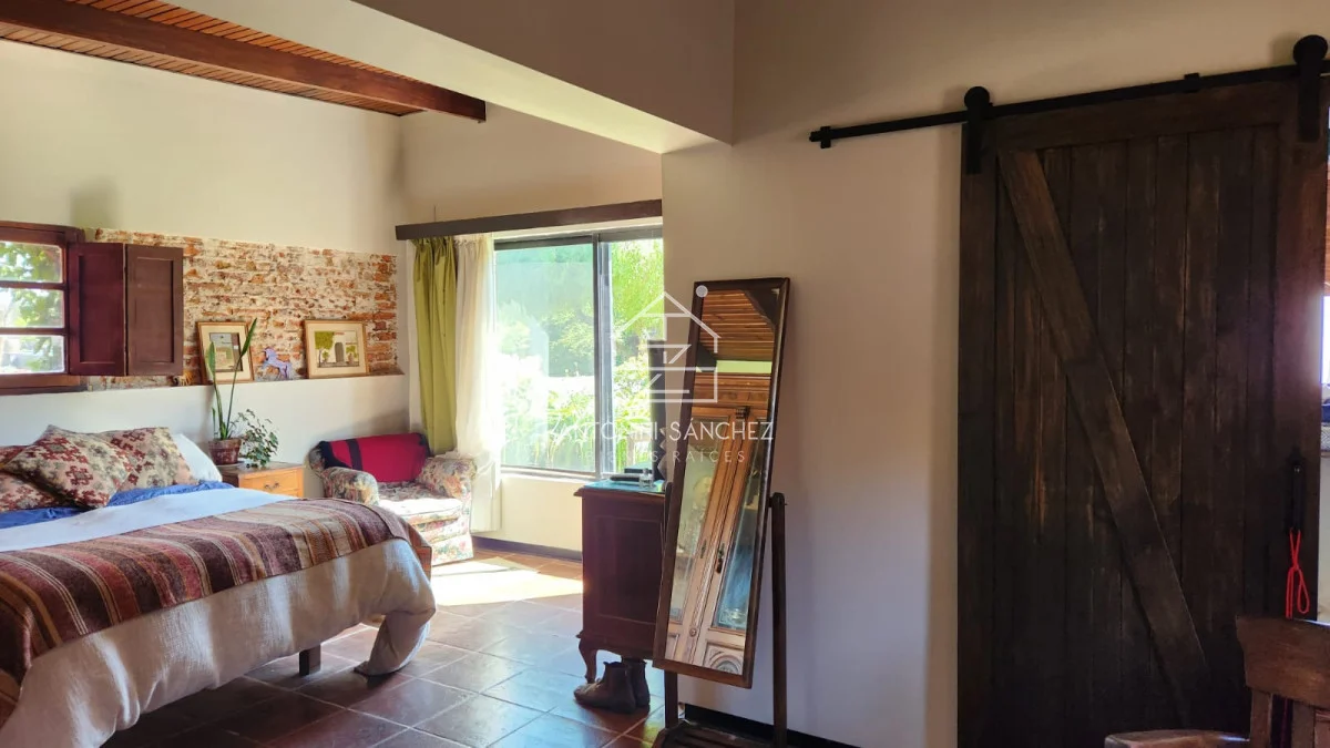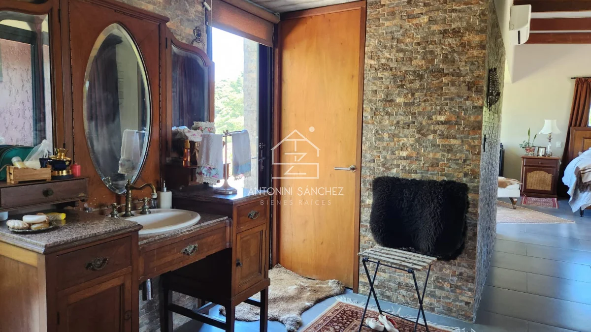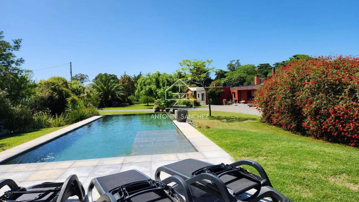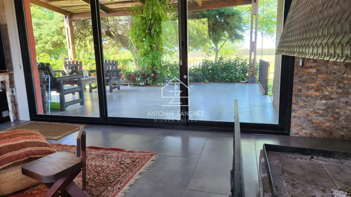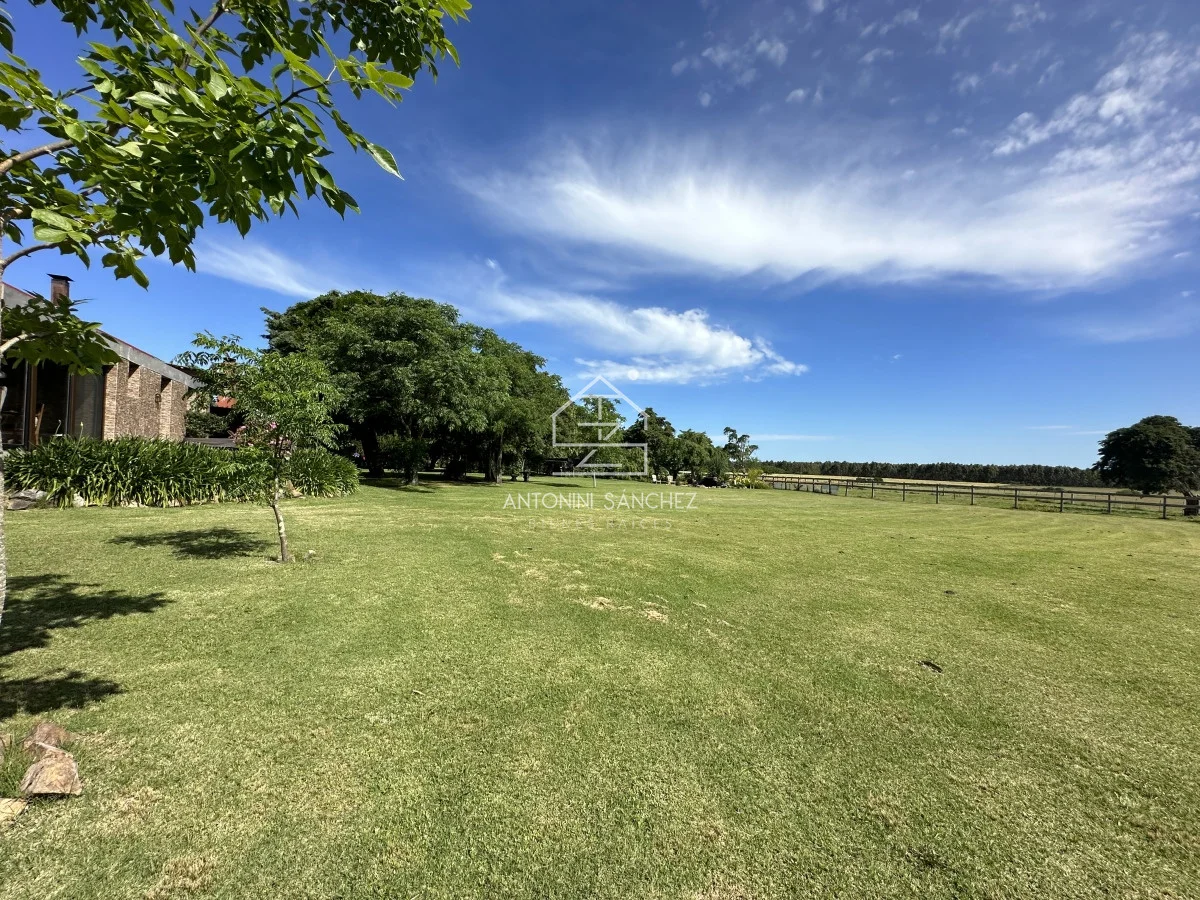 Chacra con vista a las sierras y 10 minutos de las playas. 14 hrs totalmente alambradas y potreros con bebederos. Agua potable de pozo. Tajamar con agua semisurgente permanente. Cancha de polo y picadero de arena 60 x 50 para equitación. Casa principal de aprox 150 mtrs con 2 dormitorios, 2 baños living estufa a leña. Spa con 24 chorros al lado del cuarto principal con vista al campo. Segunda casa, totalmente reciclada con 2 dormitorios,baño y cocina. Apto de 1 dormitorio , baño, cocina y living integrado con estufa a leña para el personal. Piscina con borde infinito y barbacoa techada y cerrada con ventanal al piso con vista al campo.