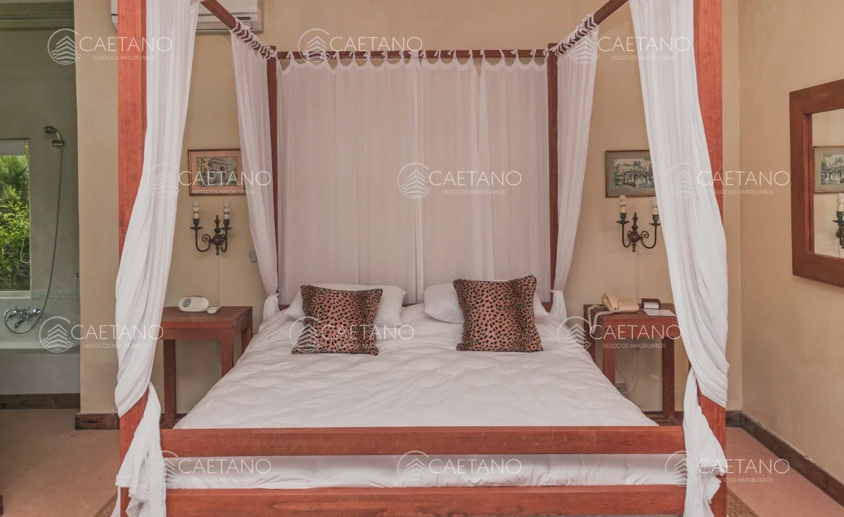 amplio living comedor con salida a galerías que rodean una gran piscina climatizada, toilette, 9 dormitorios, 8 de ellos en suite, play room, cocina, en un parque muy cuidado encontramos parrillero abierto, cancha de futbol 7 y casa para caseros.
