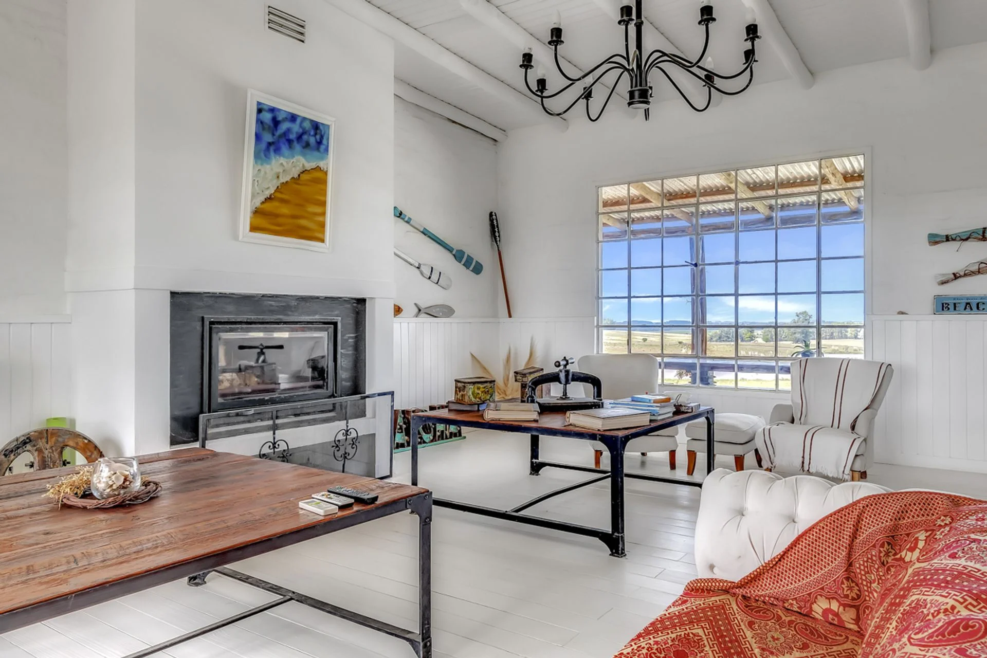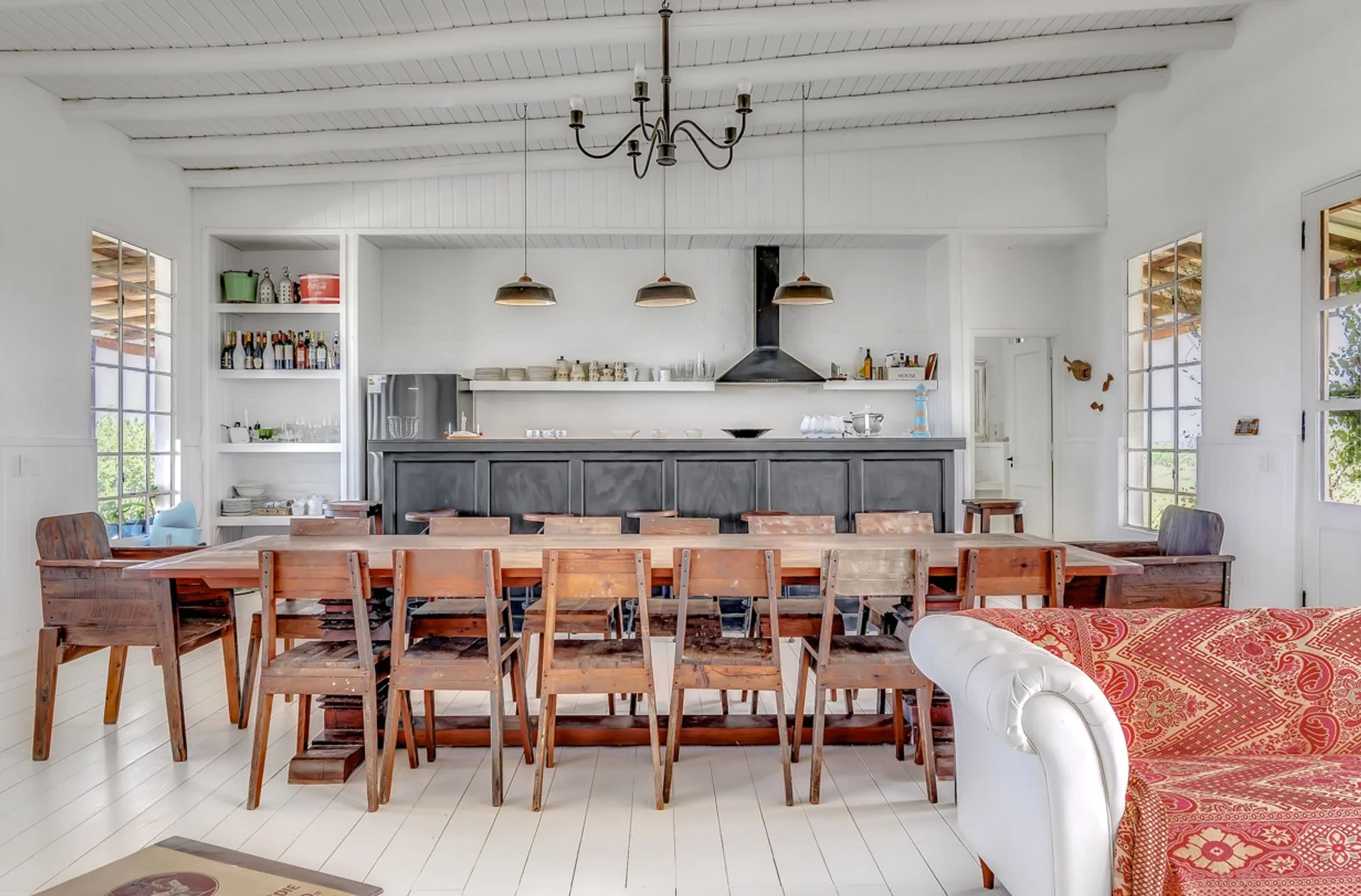 Bloque central: espacio amplio que integra living-comedor con cocina estilo americana, equipado con hogar a leña y estufa de alto rendimiento. Incluye baño social y acceso directo al jardín trasero y piscina.