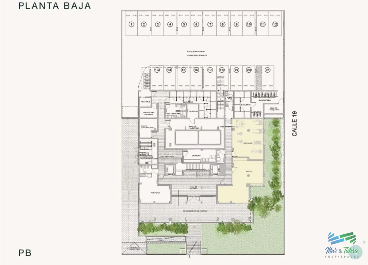 El garage tiene una capacidad para 21 autos en subsuelo y 6 en una área descurbierta