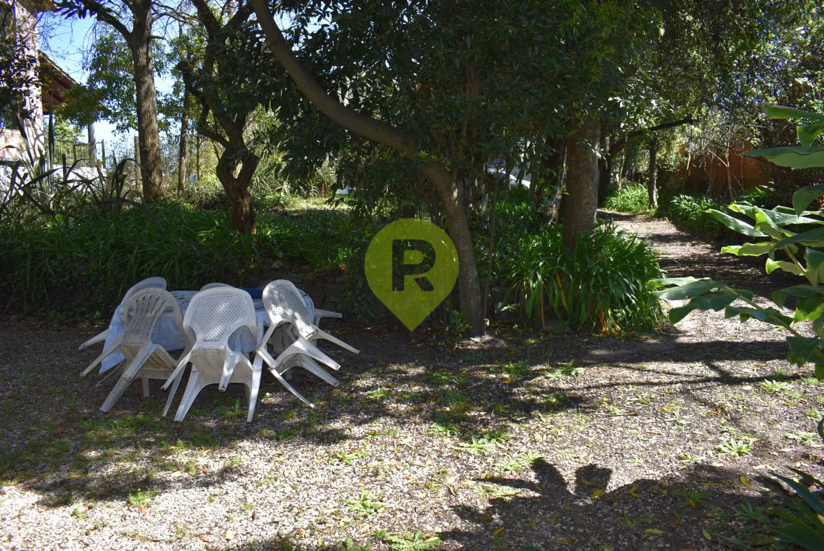 Jardín arbolado con variedad de especies: roble, níspero, laurel, palmera, entre otros
