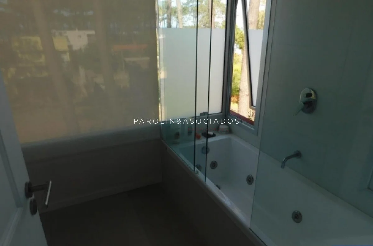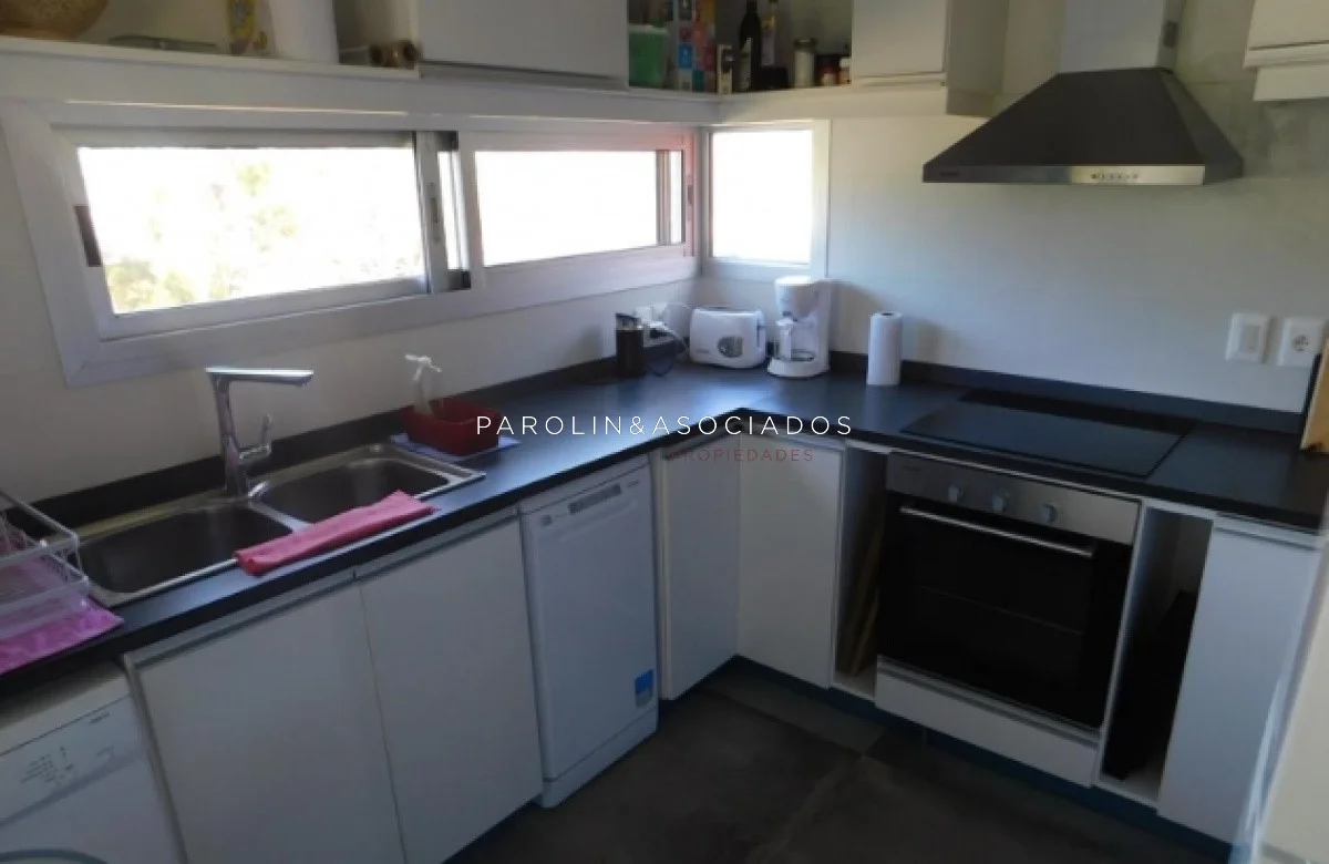 Excelente casa en venta en Montoya. Desarrollada en dos plantas con buena vistas al mar. Tres dormitorios en suite, dos en planta baja. Área social amplia y luminosa. Vistas al mar y al bosque. Pisos en porcelanato símil hormigón y pisos flotantes. Terminaciones en Tarquini.