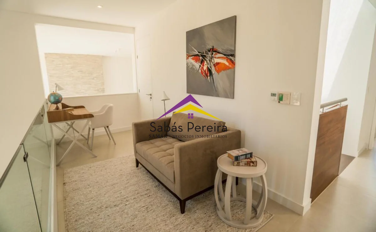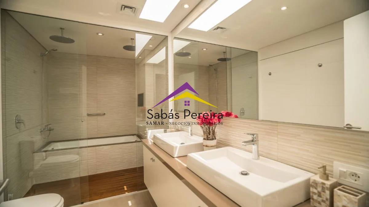 living – comedor, una gran cocina con desayunador, 3 amplias suites ( una de ellas en planta baja ), una master suite con vestidor y sala de estar; 4 grandes baños y toilette, recepción, escritorio, parrillero techado, pergolado exterior y solarium, piscina climatizada.