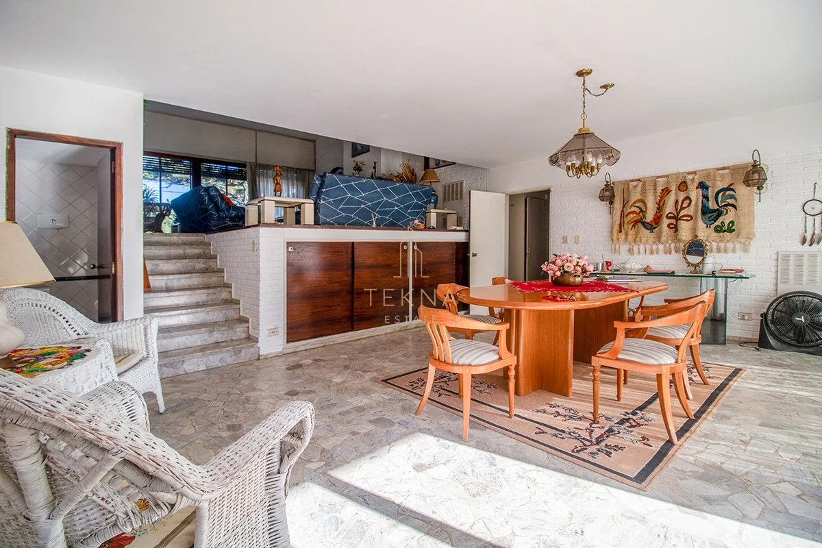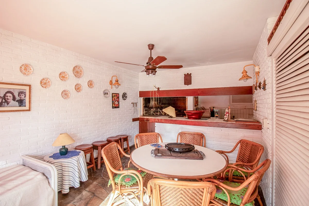 Cuenta con 4 habitaciones (uno en suite), 4 baños + habitación de servicio con baño, sala con gran estufa a leña, 2 barbacoas, una interior y otra al lado de la piscina (climatizada), con horno para pan y pizza. Todas las habitaciones equipadas con aire acondicionado. La casa está totalmente equipada y en excelentes condiciones.
