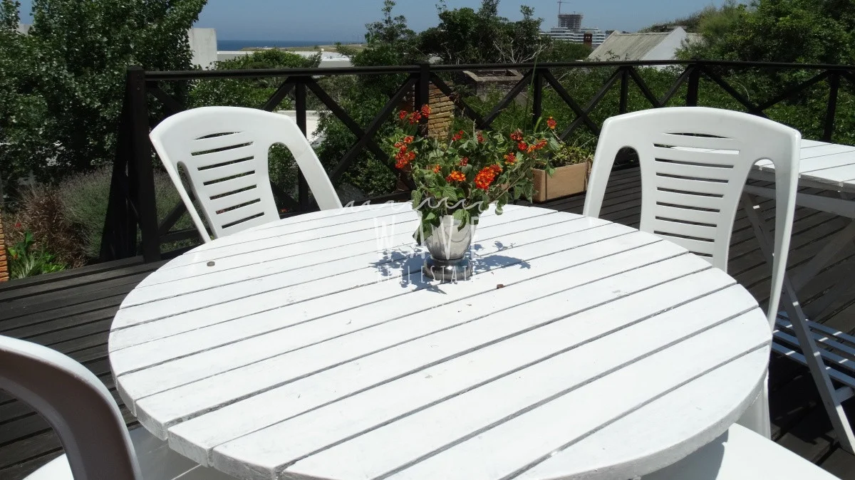 La Barra, cerca de todo y alejada del ruido, a metros de la playa, en una callesita hermosa, casa en dos plantas, con terraza con vista al mar, jardín con parrillero. En la planta baja, living comedor con estufa a leña, dos dormitorios y dos baños, cocina. Planta alta, suite principal con vista al mar. Tiene dependencia de servicio con baño independiente.