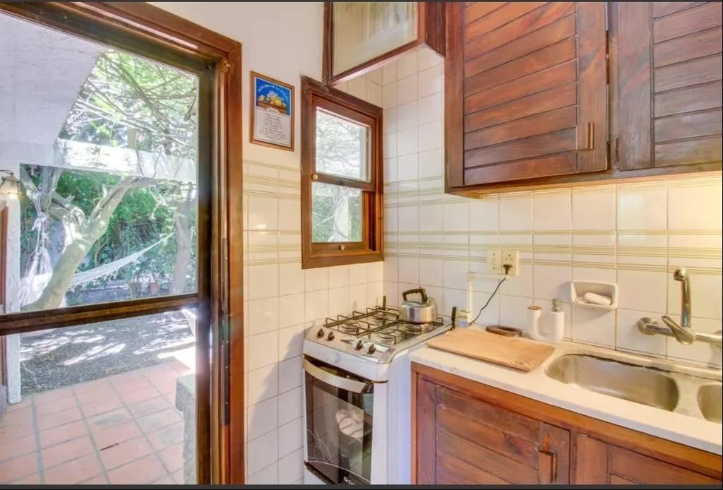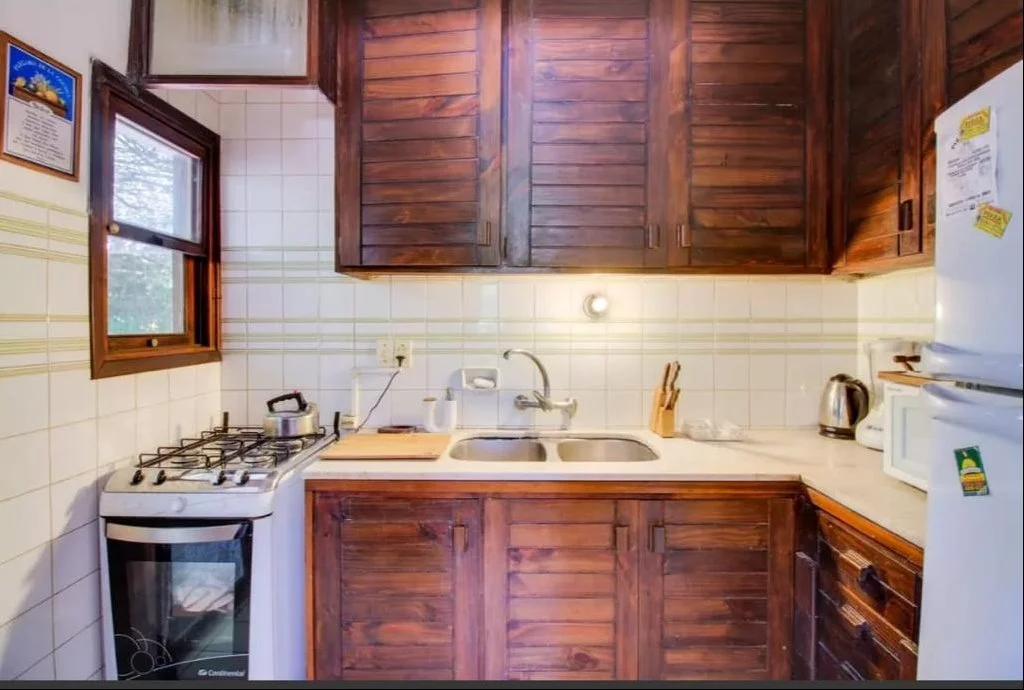 Cocina independiente y estufa a leña.