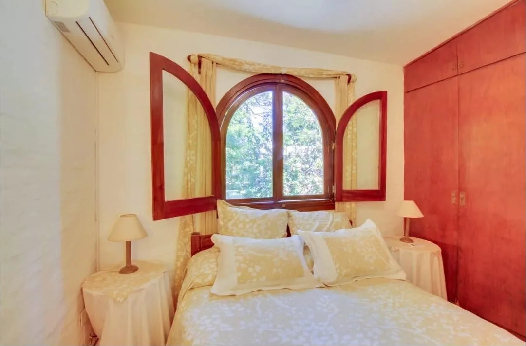 La casa principal cuenta con living comedor, 2 dormitorios,