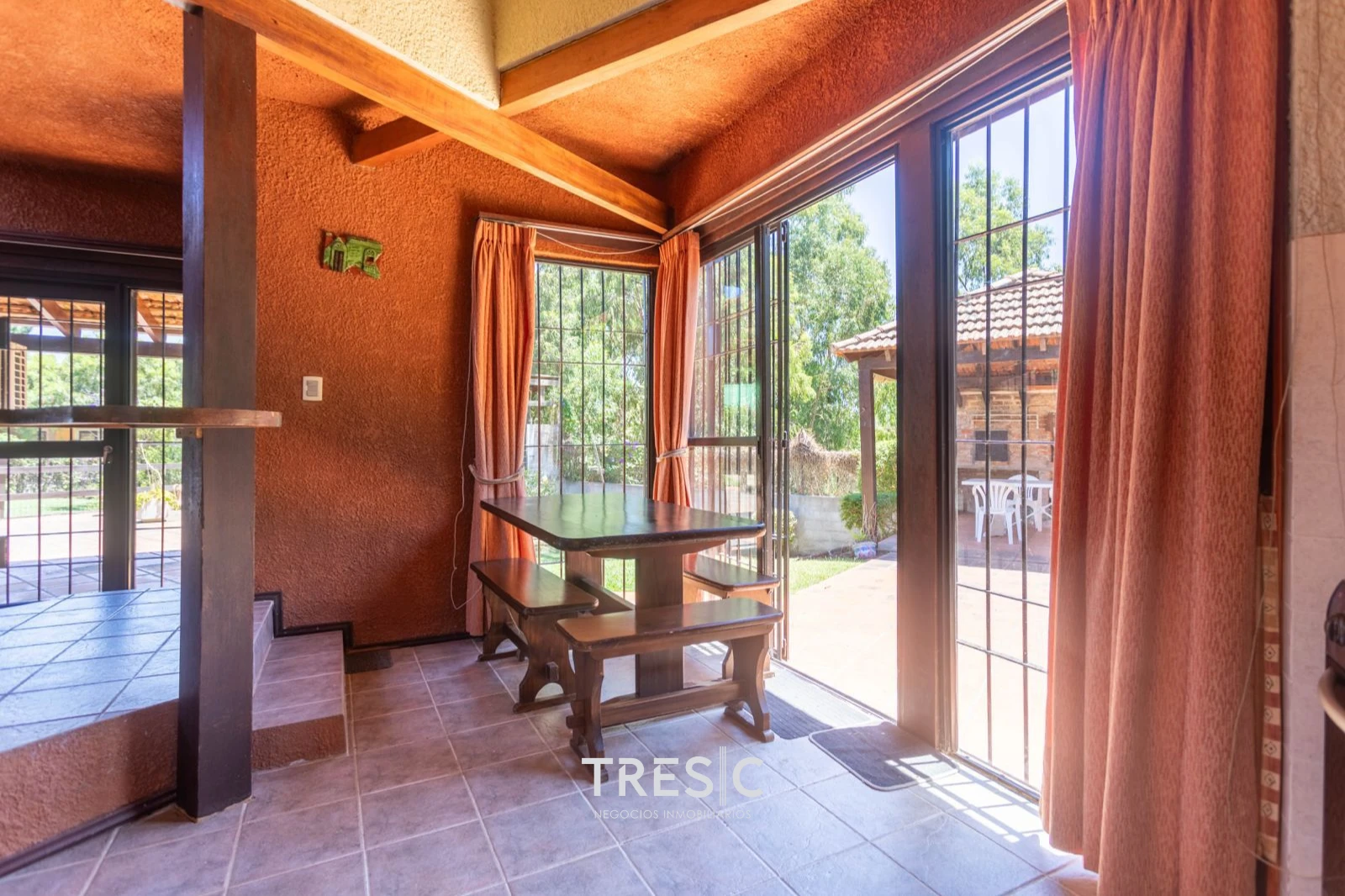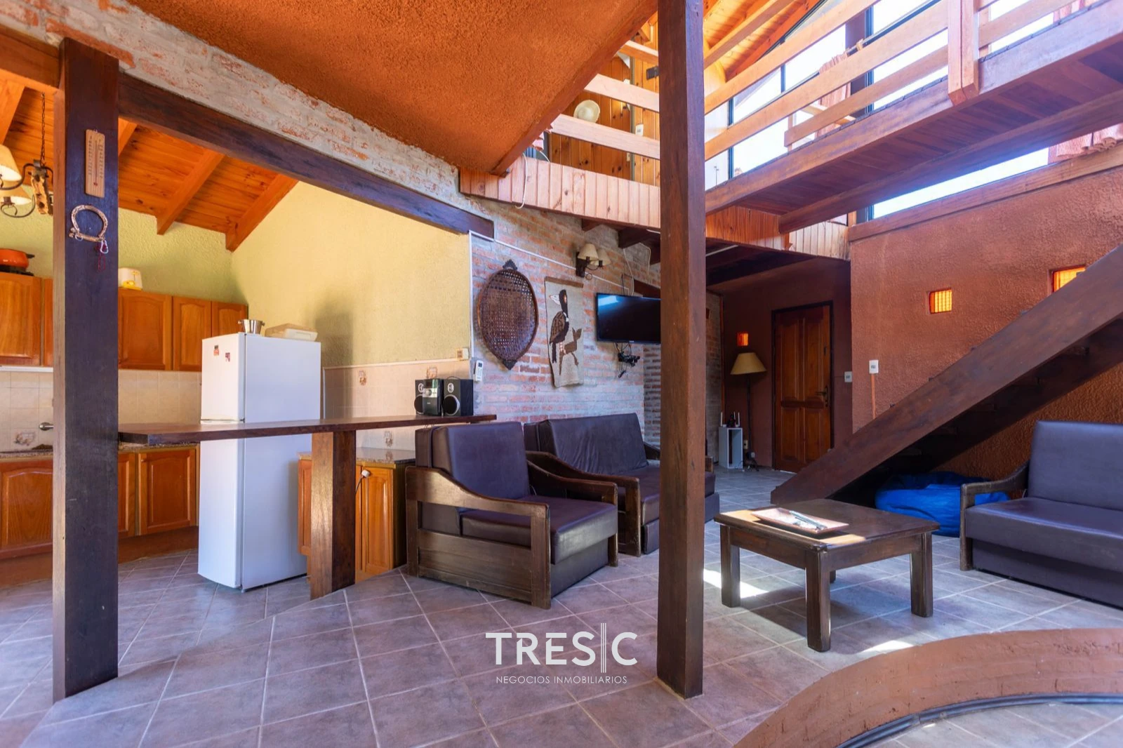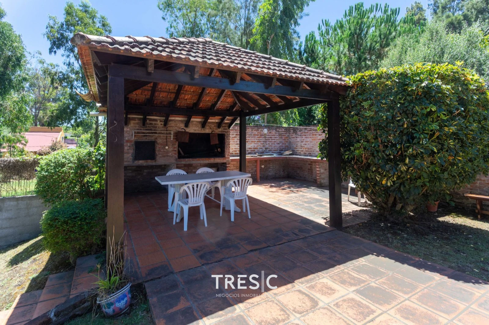 Se desarrolla en un terreno de 400 m² que combina áreas verdes con espacio para estacionar hasta 3 vehículos, además de contar con un parrillero techado y horno. Construcción con techo de teja francesa, aislamiento de espuma plast y membrana, junto a un atractivo cielorraso de madera.