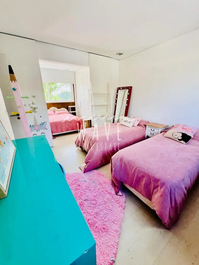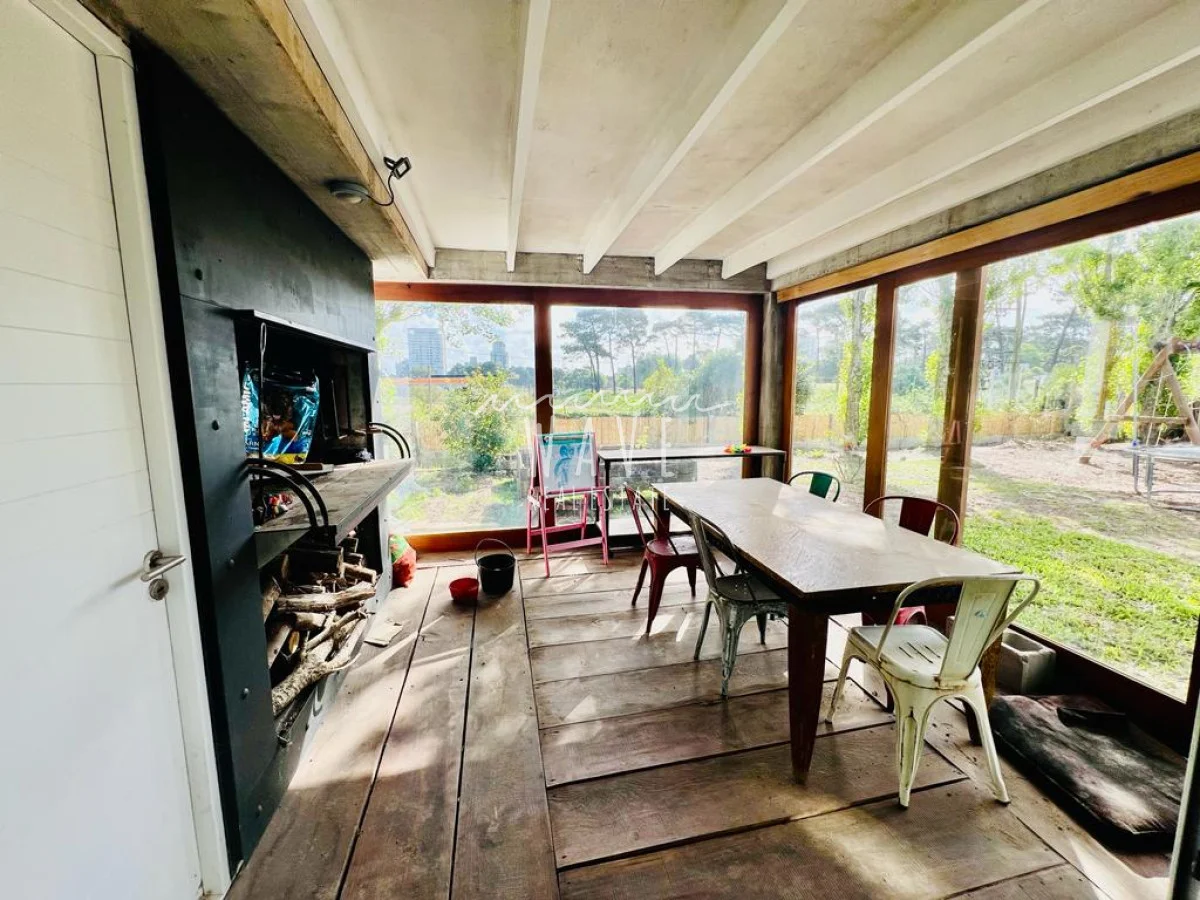 La casa principal cuenta con 3 suites (1 master suite), toilette, cocina americana integrada a comedor, living, estar con estufa a leña y otro estar con parrillero cerrado, que puede funcionar como playroom. En una construcción aparte se ubica un bungalow independiente con otras 2 suites en planta superior y gran parrillero cerrado en planta inferior, con salida al gran Deck.