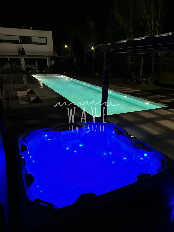 Tiene un área exterior muy disfrutable, con piscina climatizada de 25 m2, jacuzzi, jardín preparado para niños con juegos de madera y cama elástica.