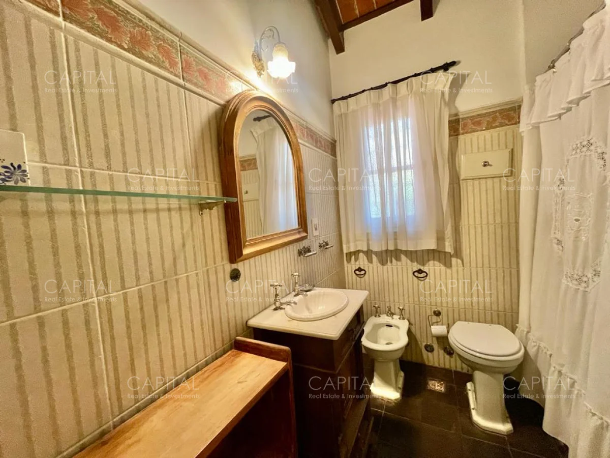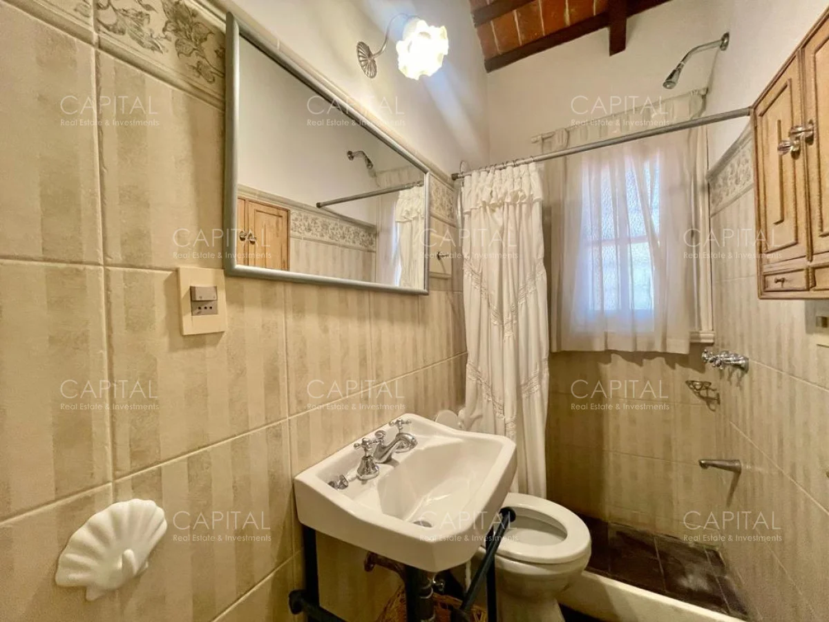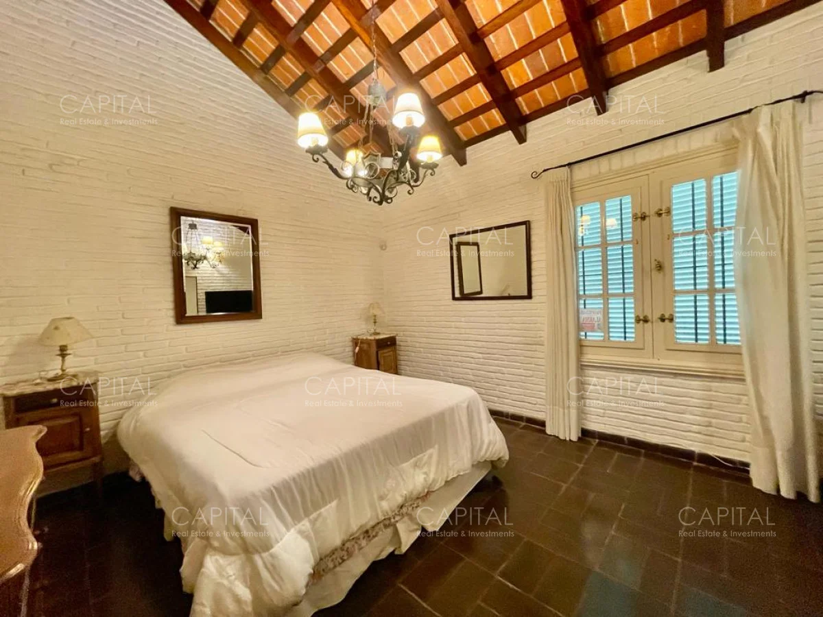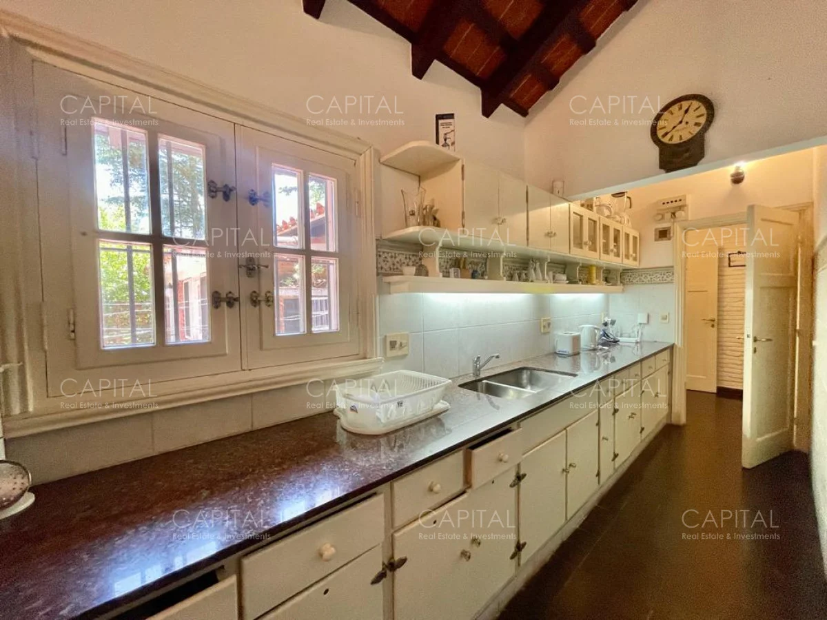 Propiedad de época construida en ladrillo, se encuentra en un lote esquina de 2680m2 con 373m2 construidos. Cuenta con 3 dormitorios y 2 baños, más dependencia de servicio, pileta y parrillero independiente a la casa. Sector de garage para dos vehiculos más una suite de huéspedes Consulte con nuestros asesores Capital Real Estate Referencia Interna : Tera-33752