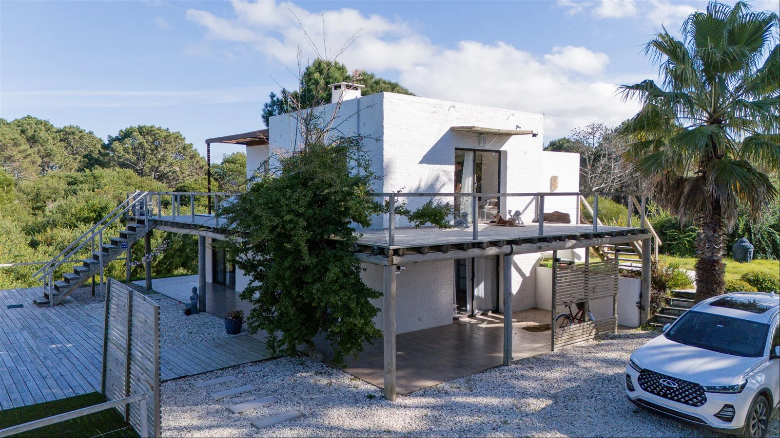 Faro de Luz is a stunning three-level home nestled in the peaceful woods of Faro de José Ignacio. Set on a private 1,250 m² lot, it features a two-level terrace with a covered BBQ area, a brick pizza oven, and a pool—perfect for outdoor living.