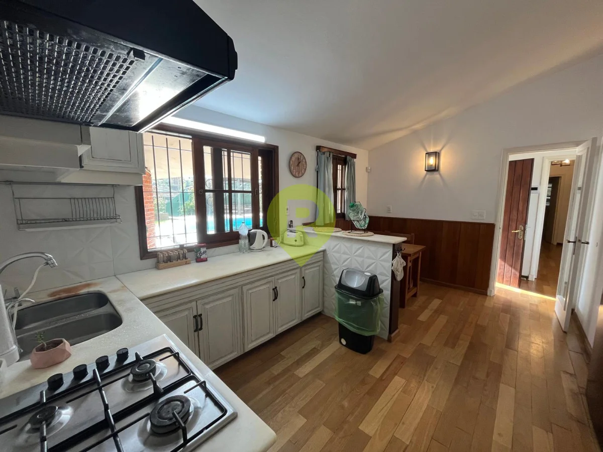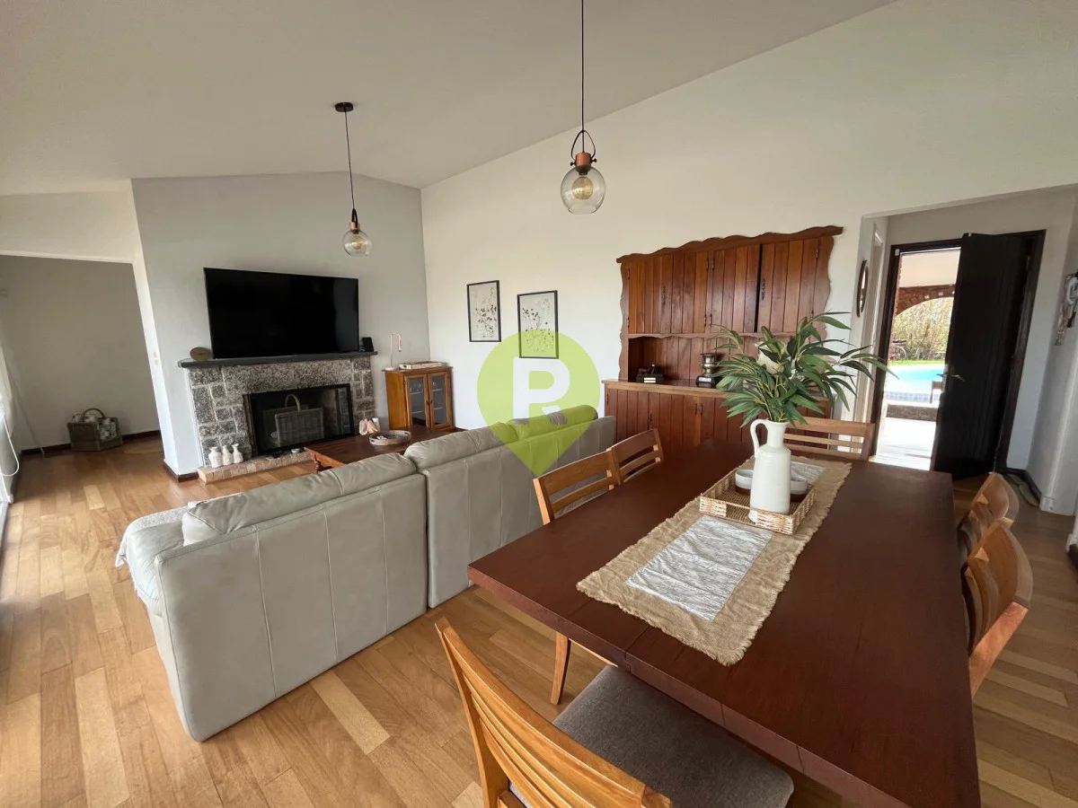 Son 346 metros edificados, con ambientes amplios en toda la casa, pisos de parquet, tiene un gran living - comedor con hogar a leña, 4 dormitorios ( 2 en suite, ppal con estufa a leña ); 4 baños, terraza con vistas parciales al mar y gge.