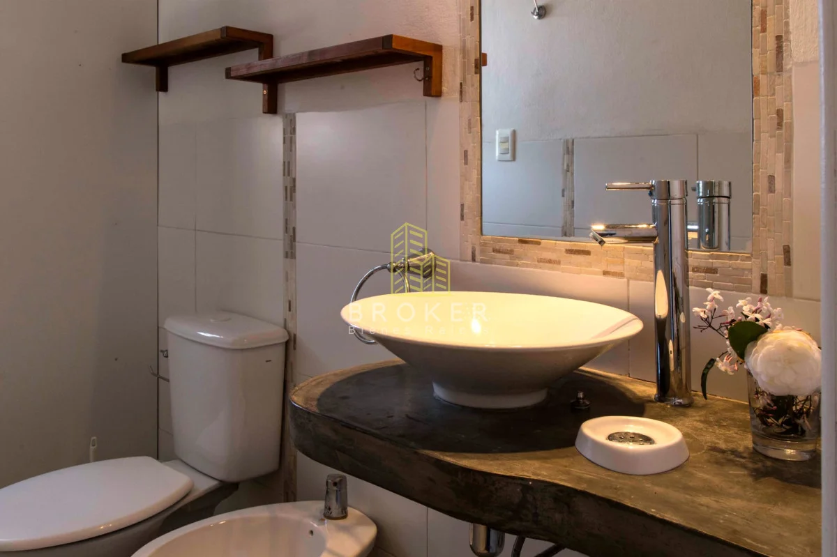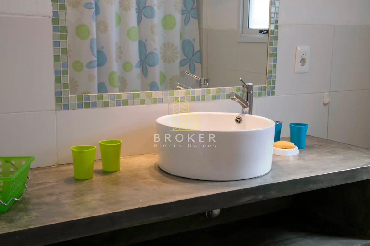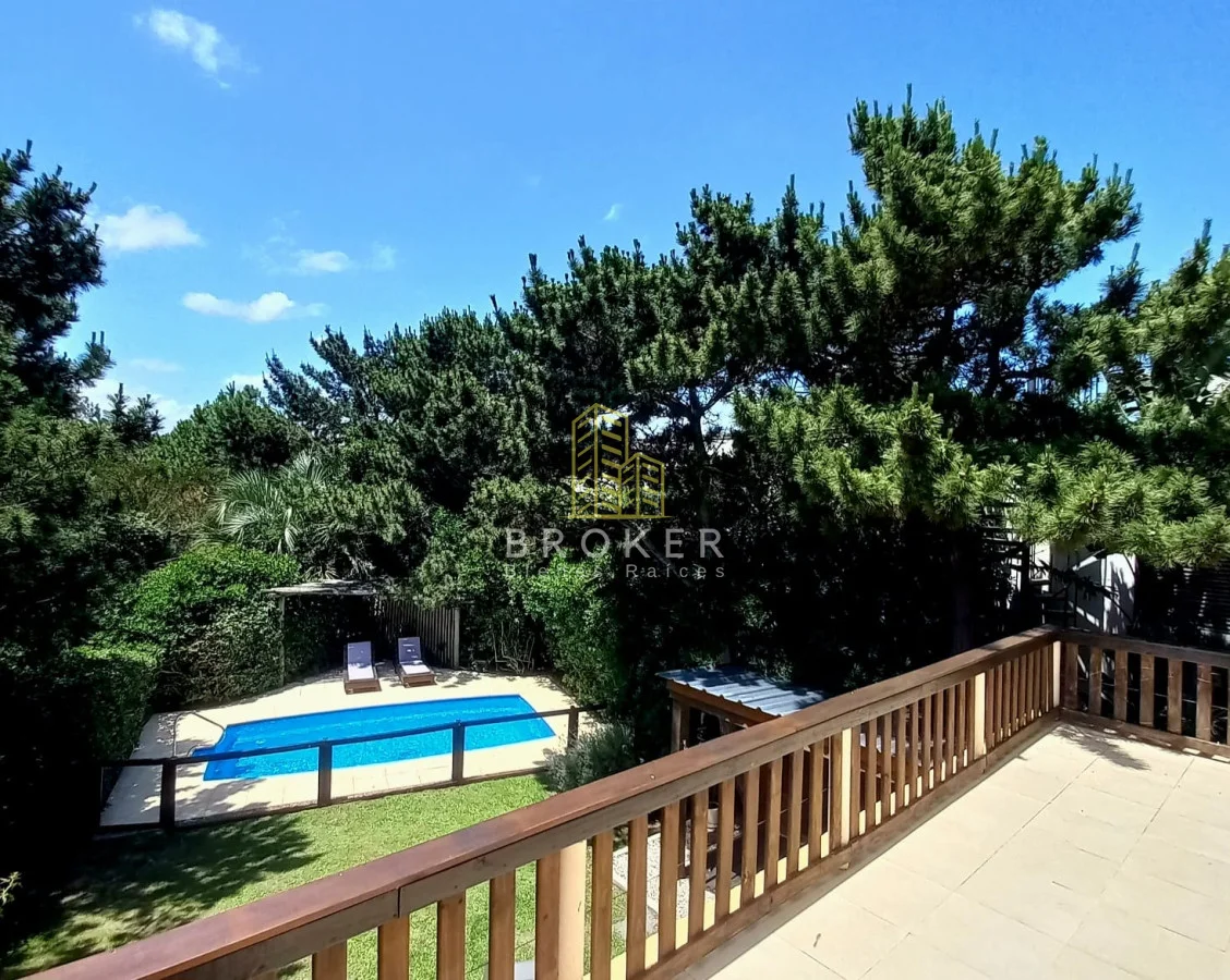 La casa cuenta con un amplio deck de 26 m² en el primer piso, una terraza de 28 m², y un mirador de 46 m² que ofrece una vista inigualable de toda la bahía.