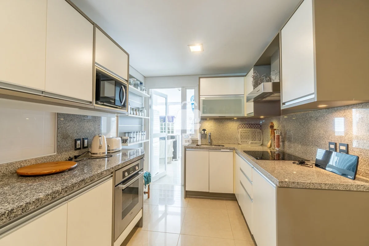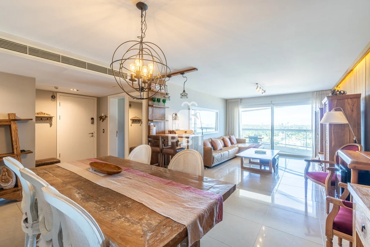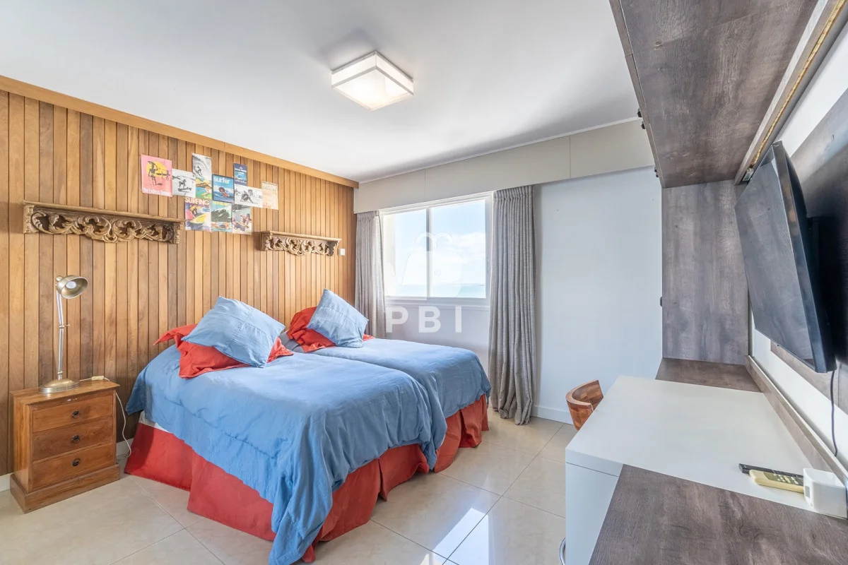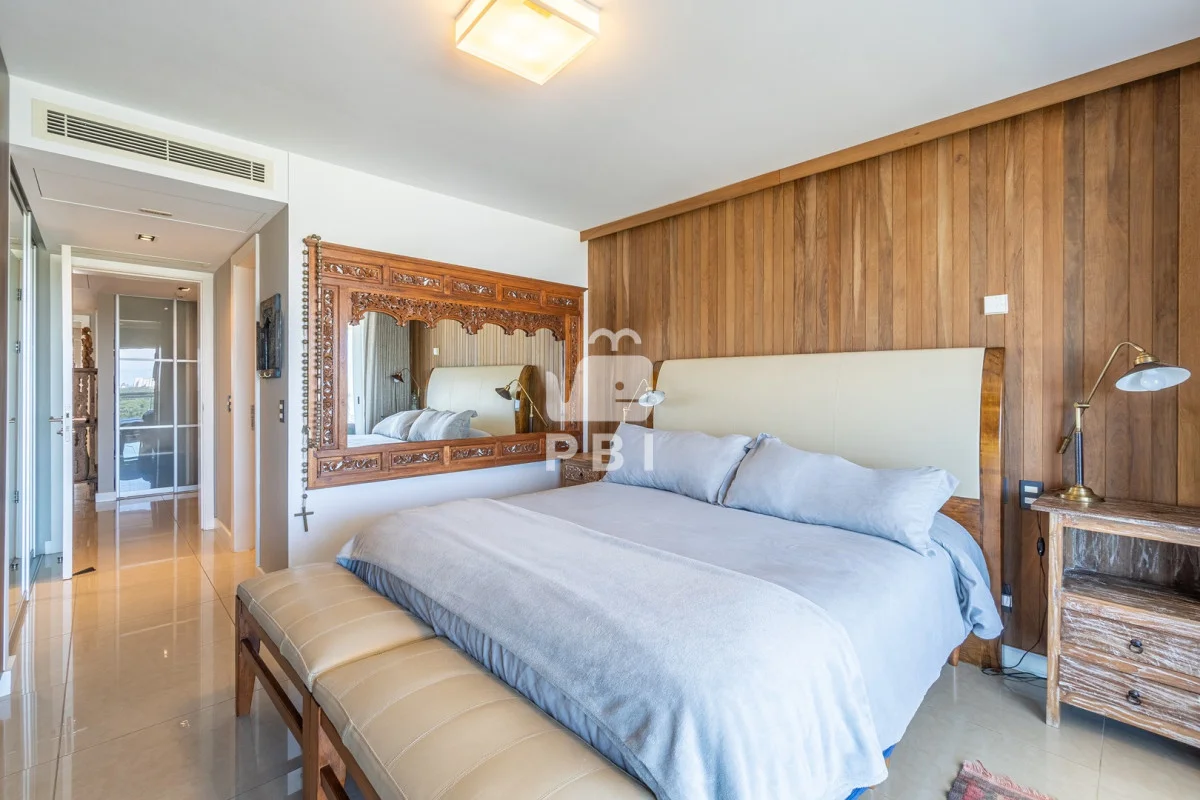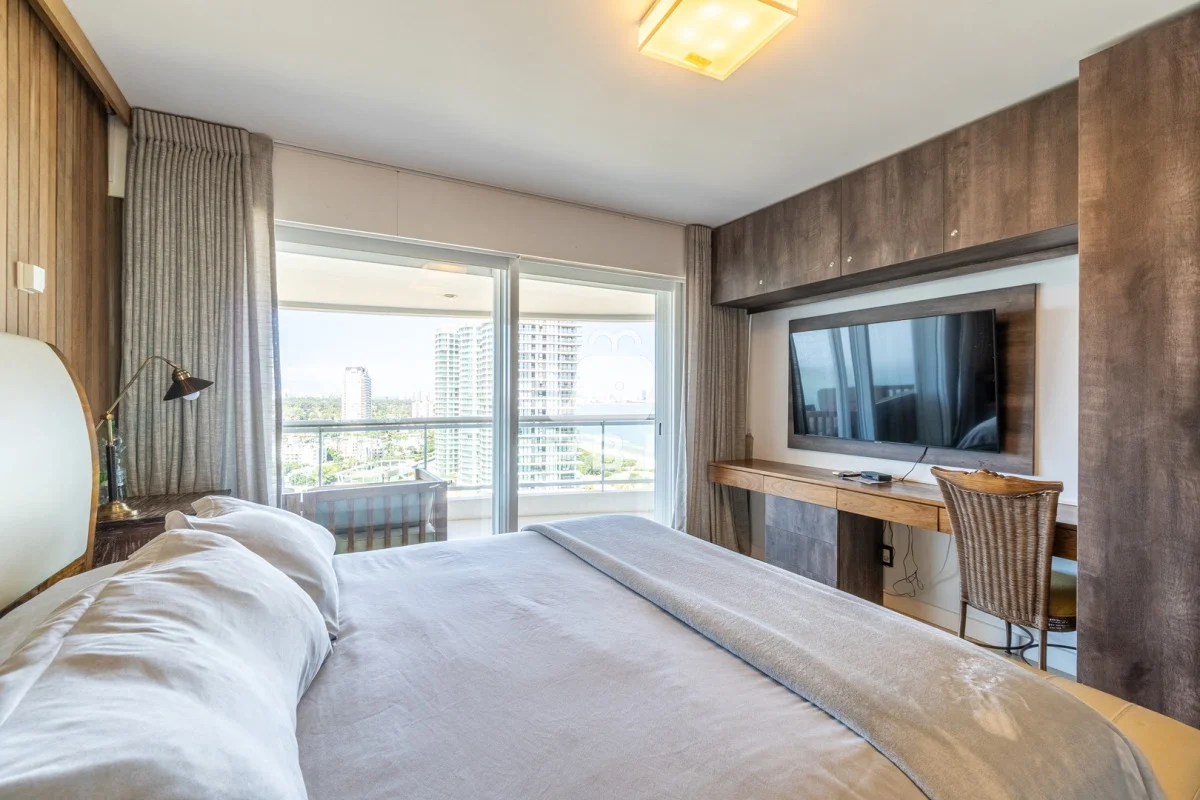 La unidad cuenta con 2 dormitorios en suite, 3 baños en total y dependencia de servicio, con capacidad para 5 personas.