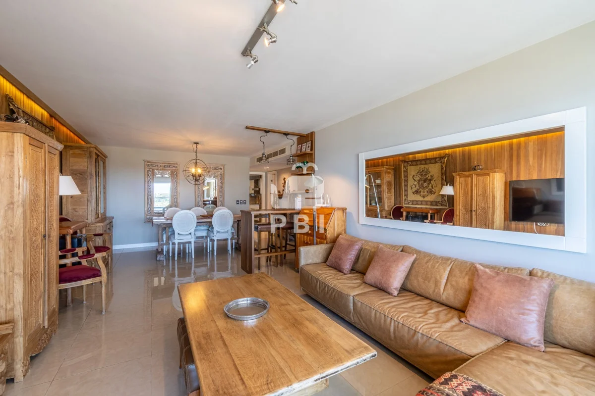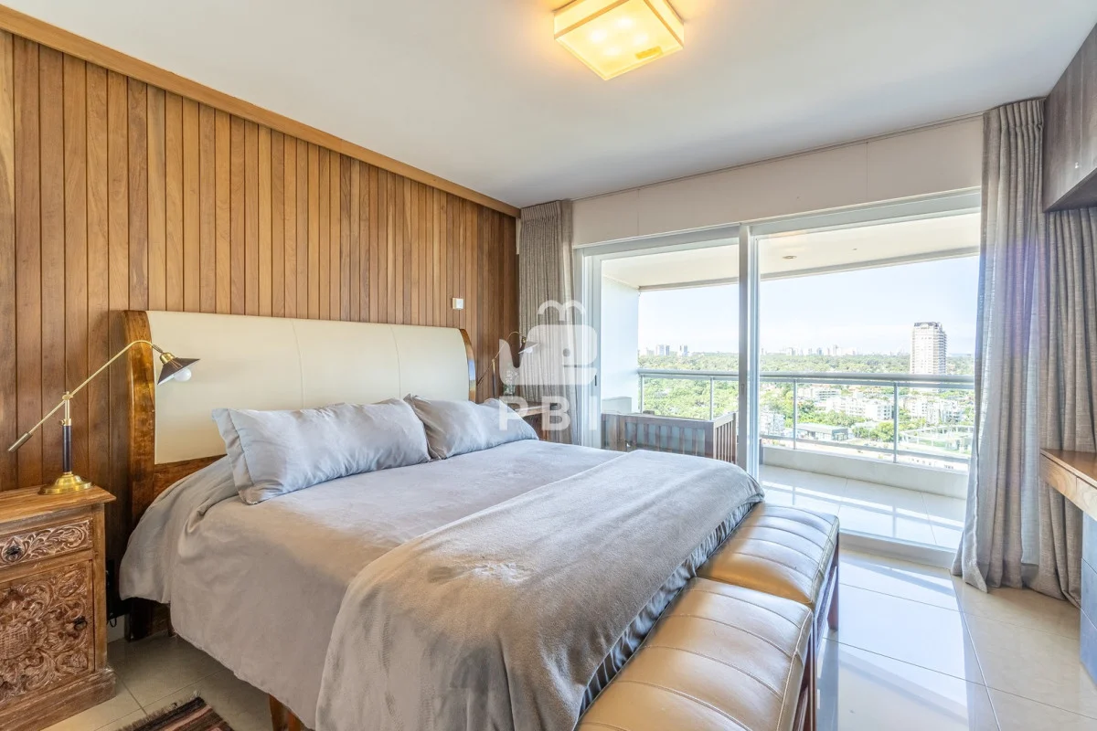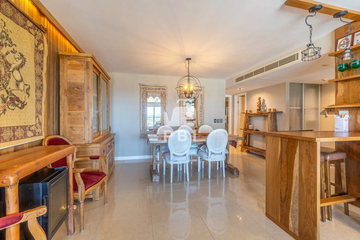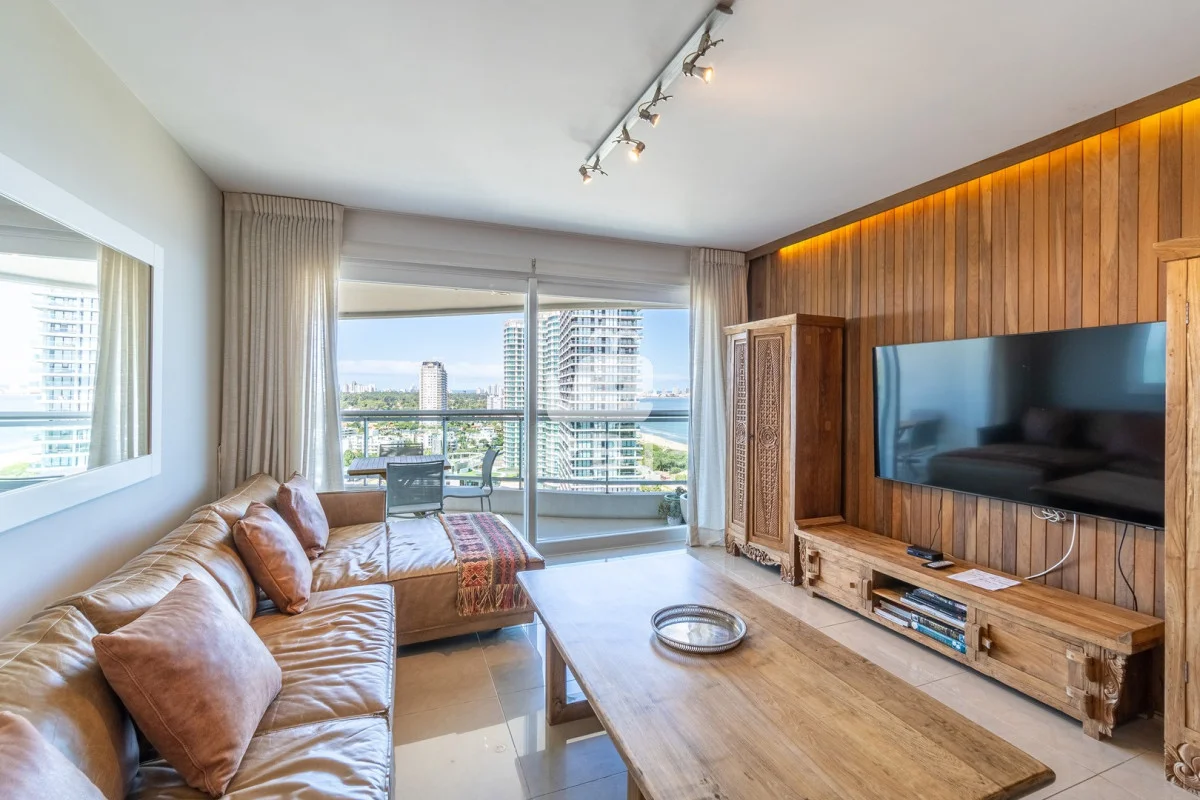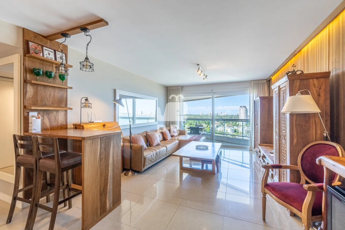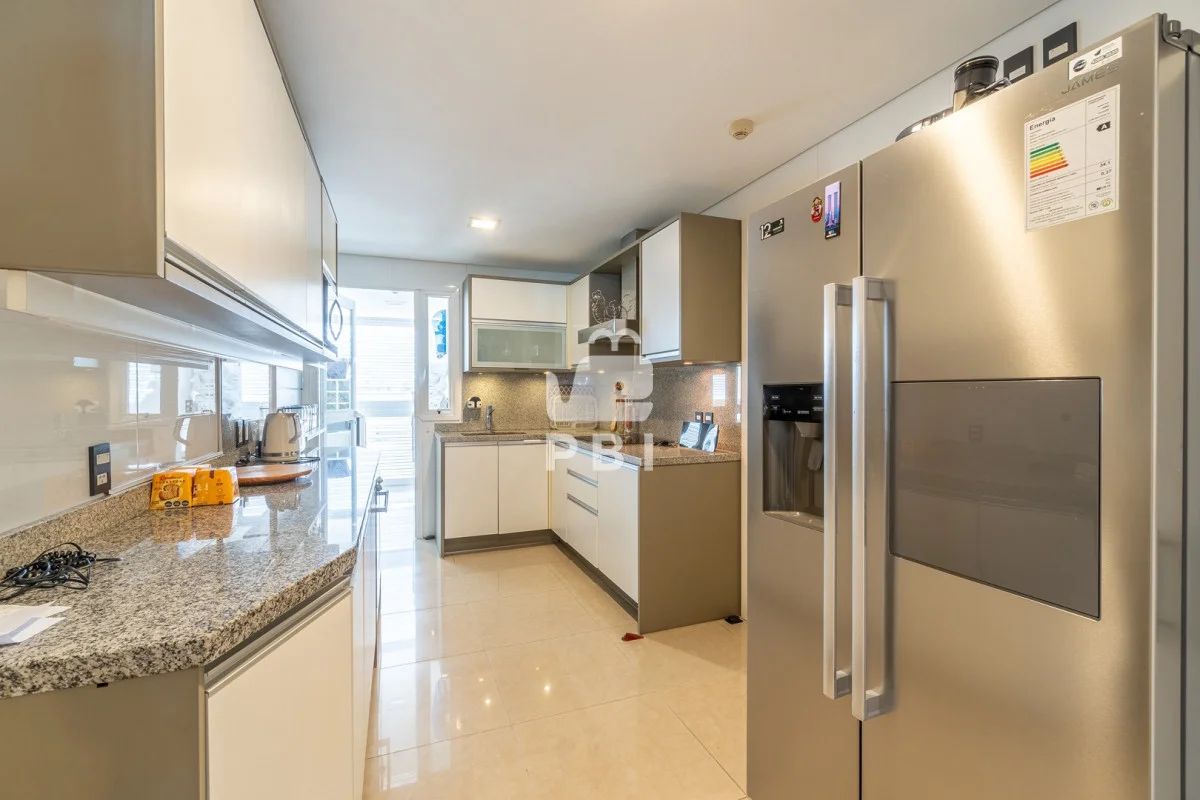 La unidad cuenta con 2 dormitorios en suite, 3 baños en total y dependencia de servicio, con capacidad para 5 personas.