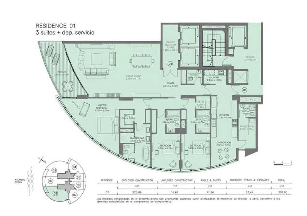Unidad esquinera de 3 dormitorios en suite, con vistas espectaculares al mar hacia el lado de la barra, en la torre de lujo absoluto y más exclusiva de Punta del Este.