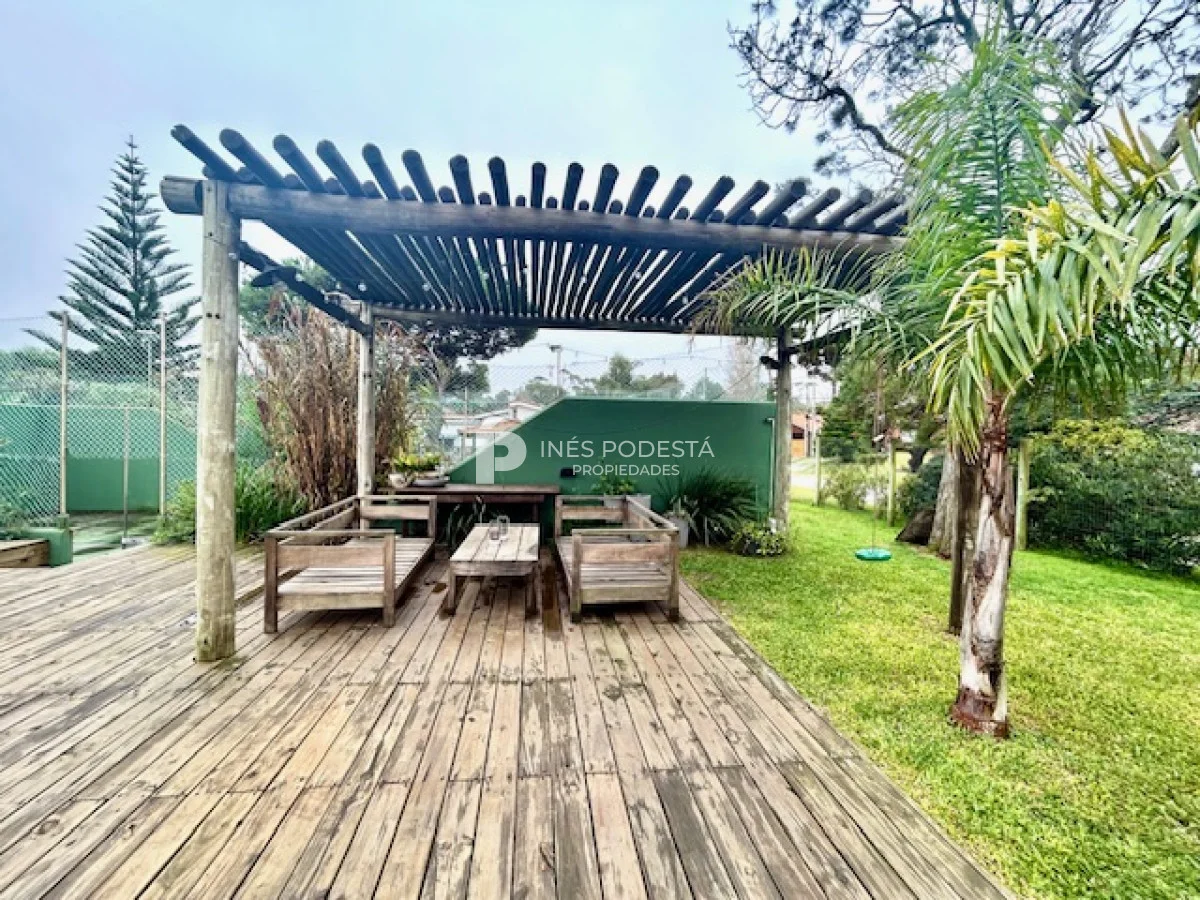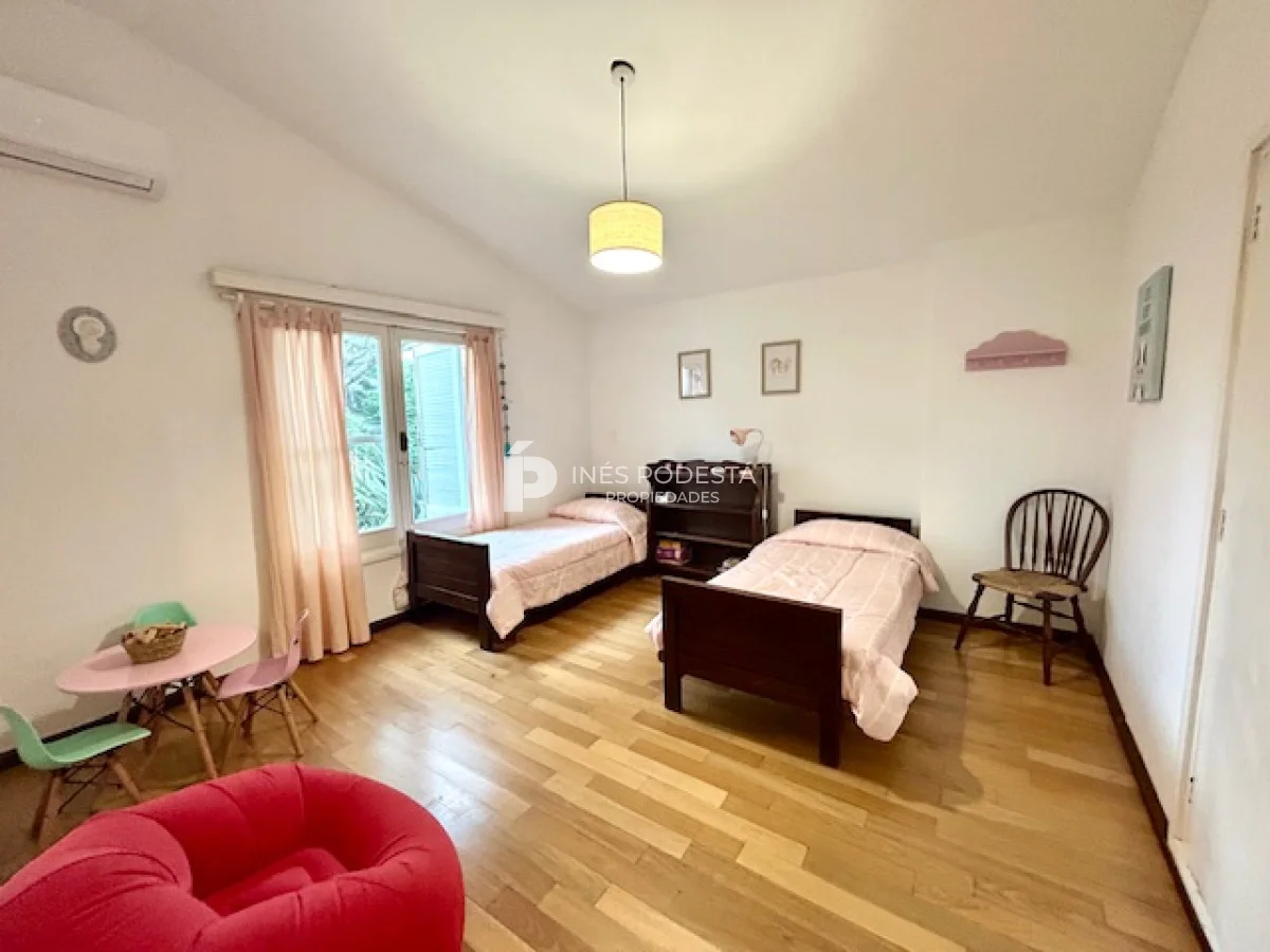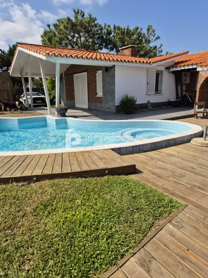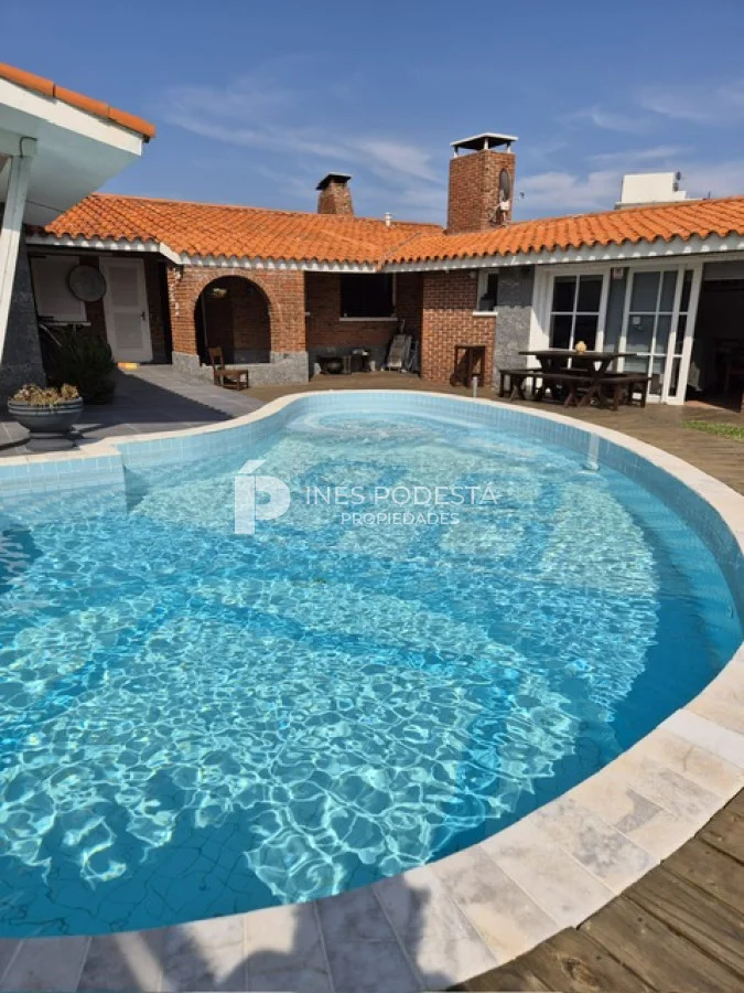 En un lote de 1300 m2 y 346 m2, ofrecemos una casa tradicional de la década del 60, reciclados baños, cocina, pisos. En una sola planta, ambientes grandes, living comedor con estufa a leña, estar, cocina con comedor diario, 4 dormitorios, dos de los sumamente amplios, 3 baños hechos a nuevo, dormitorio principal con estufa a leña, escritorio, gran barbacoa con dormitorio, baño y lavadero., gge para 2 autos y cochera, piscina climatizada, cancha de paddle, riego, cerramiento perimetral. Gran Terraza con vista al mar. Apto para propiedad horizontal (planta baja y 2 pisos.