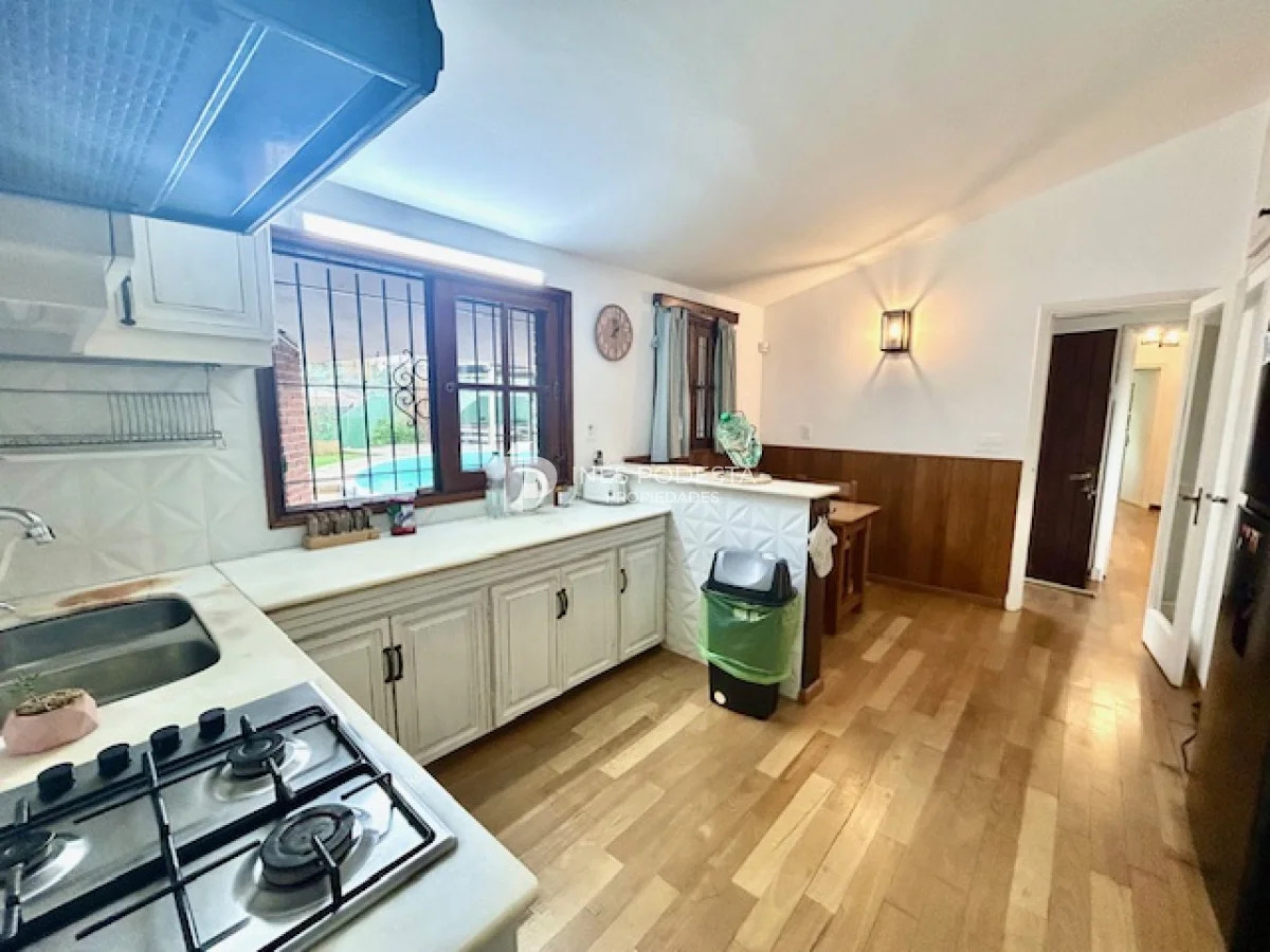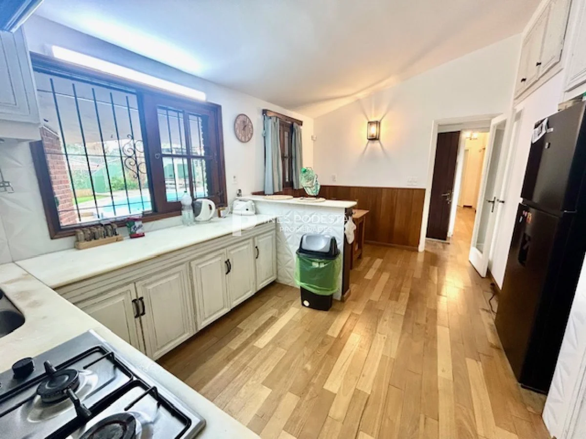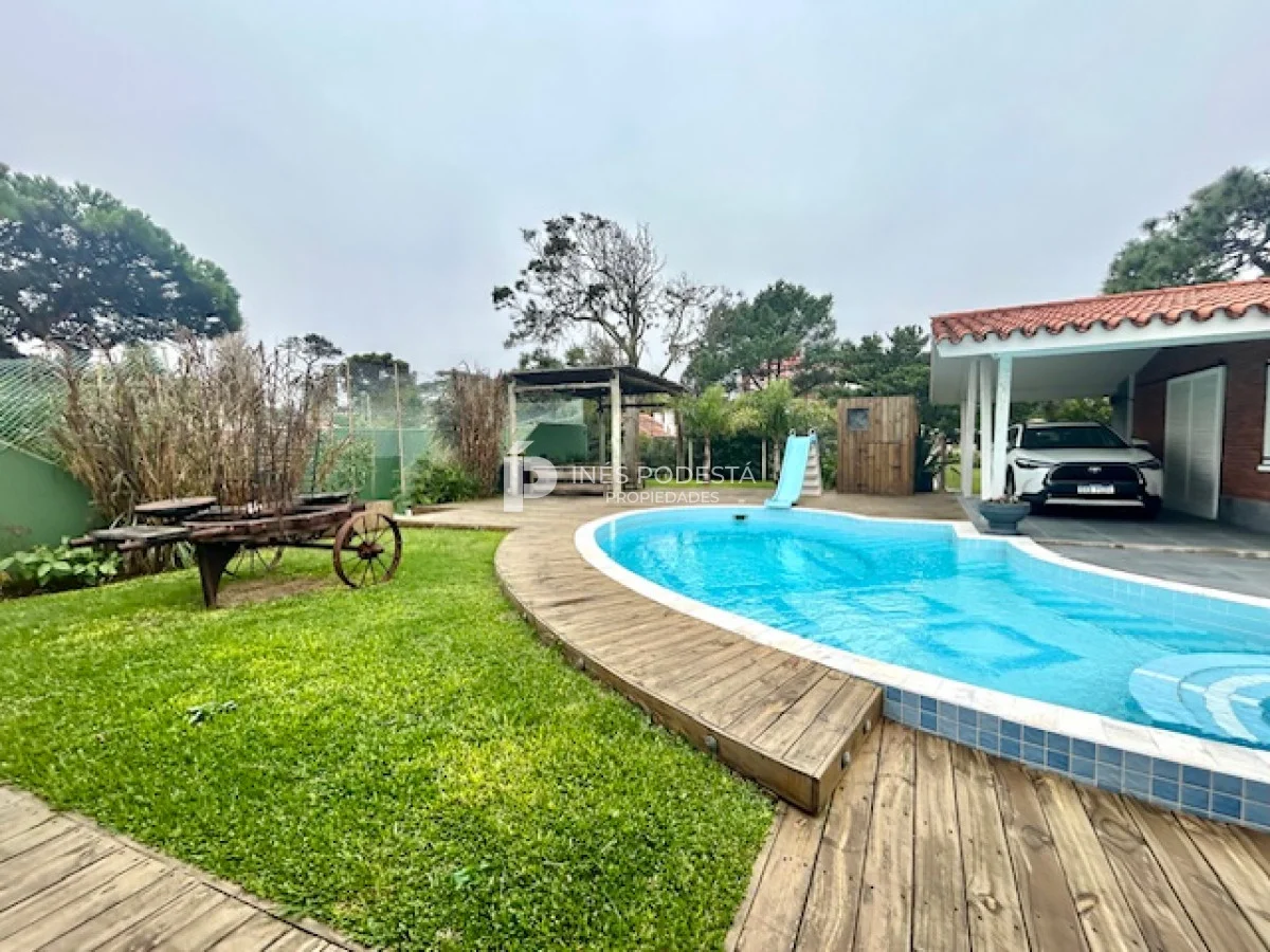 En un lote de 1300 m2 y 346 m2, ofrecemos una casa tradicional de la década del 60, reciclados baños, cocina, pisos. En una sola planta, ambientes grandes, living comedor con estufa a leña, estar, cocina con comedor diario, 4 dormitorios, dos de los sumamente amplios, 3 baños hechos a nuevo, dormitorio principal con estufa a leña, escritorio, gran barbacoa con dormitorio, baño y lavadero., gge para 2 autos y cochera, piscina climatizada, cancha de paddle, riego, cerramiento perimetral. Gran Terraza con vista al mar. Apto para propiedad horizontal (planta baja y 2 pisos.