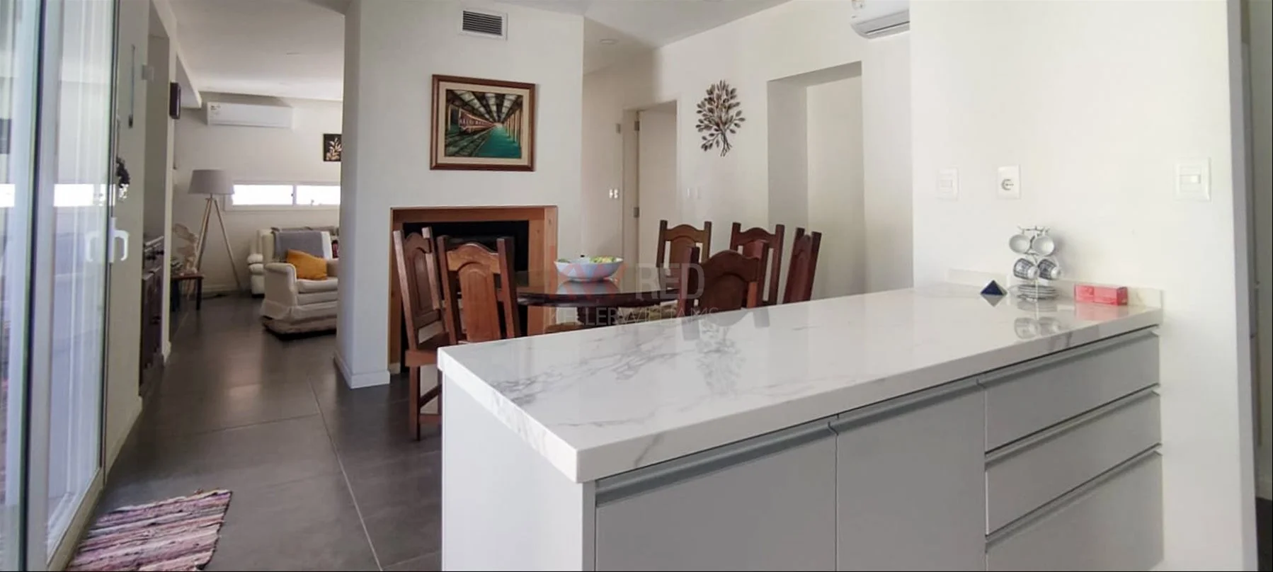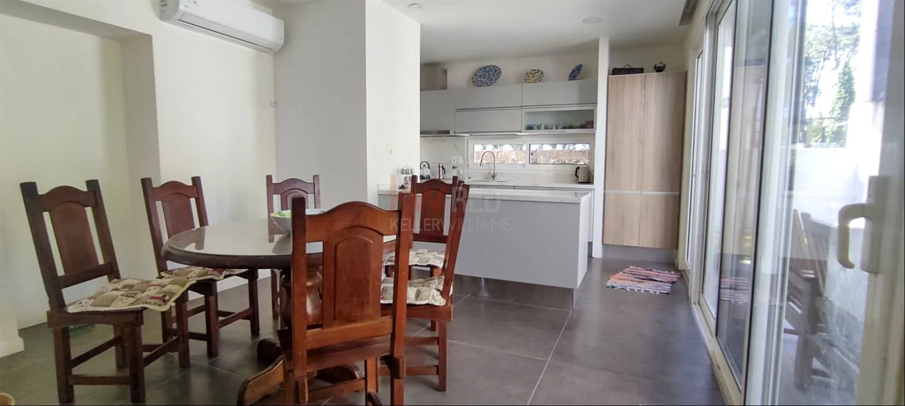 Todos los ambientes de la casa tienen aire acondicionados y grandes ventanales .