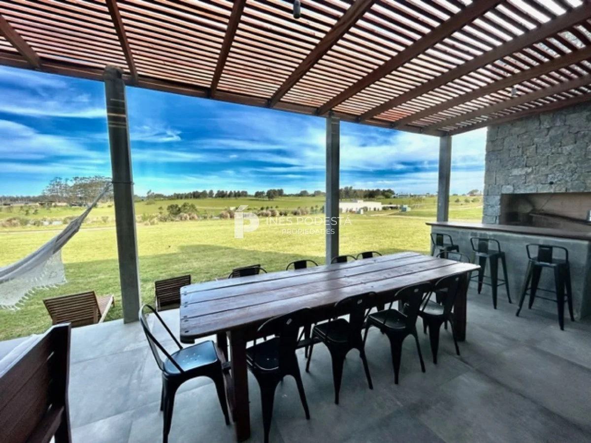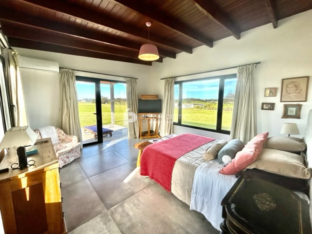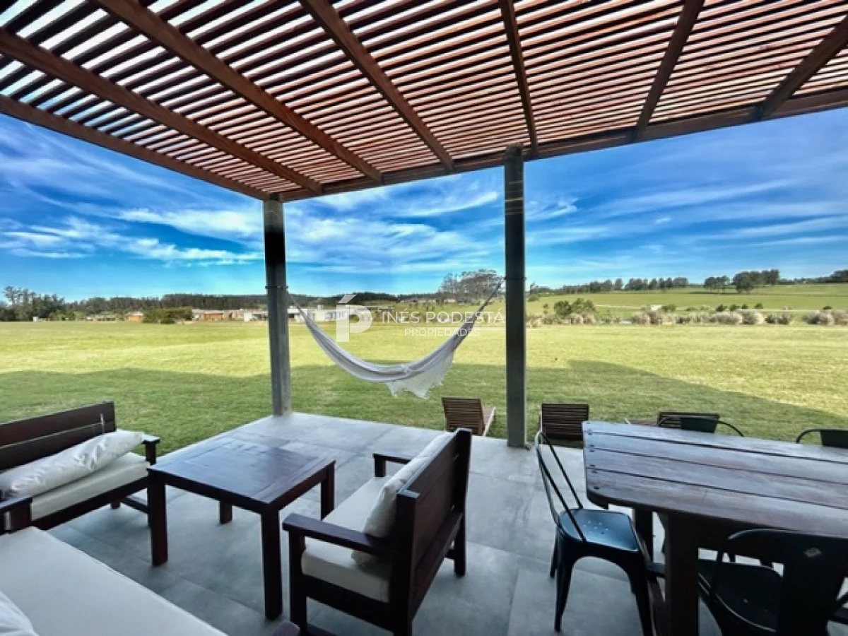 Dentro de el exclusivo barrio privado de Pueblo Mío, ofrecemos esta propiedad impecable de construcción tradicional con doble pared de ladrillo, 160 m2 edificados, amplio living y comedor con estufa a leña, toilette, 2 grandes suites (la principal con vestidor), lavadero, 2 cocheras, calefaccionada por bomba de calor con losa radiante y agua caliente central. Excelente orientación de sol noroeste, ideal para vivir todo el año. Club House con pileta, caballos, gimnasio, canchas, deportes acuáticos en verano, dormis en alquiler para los propietarios
