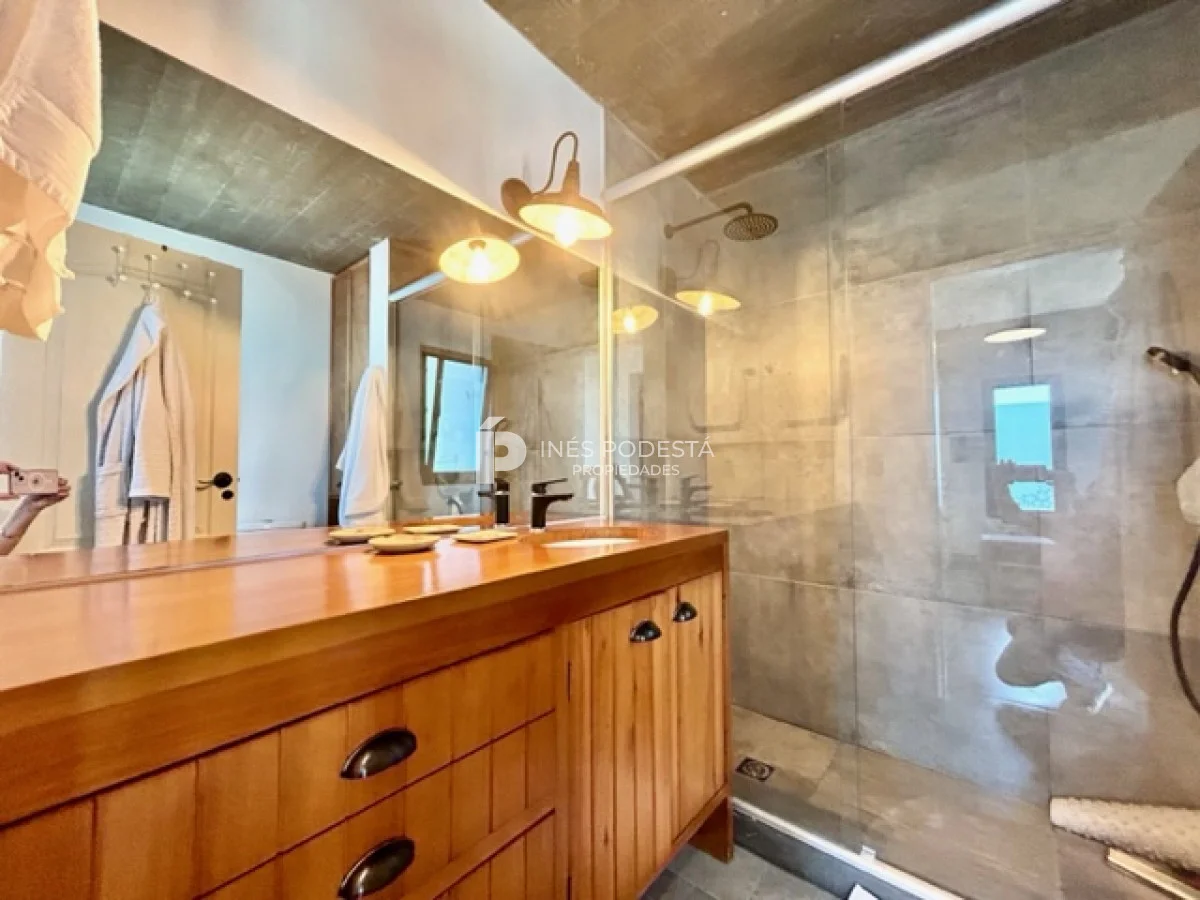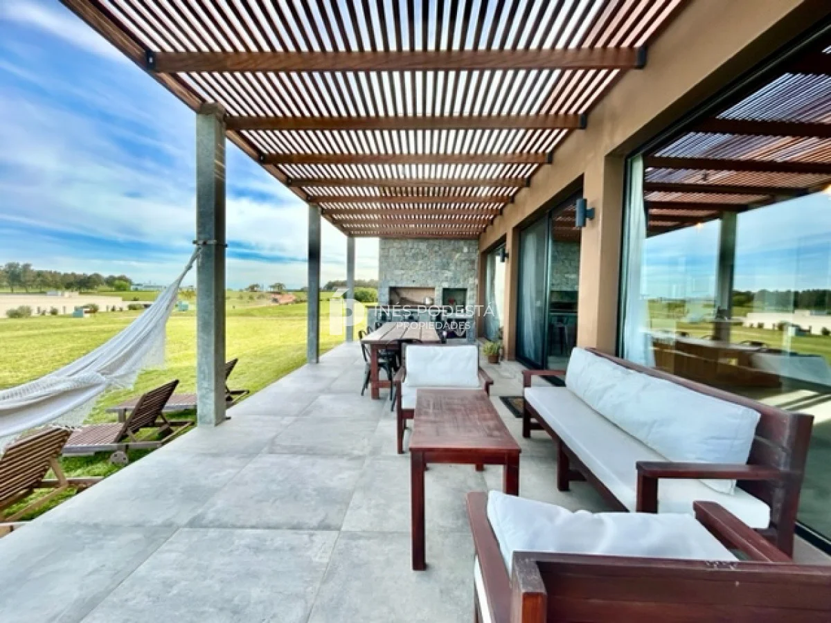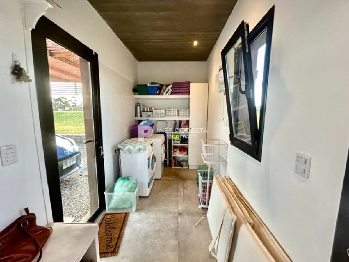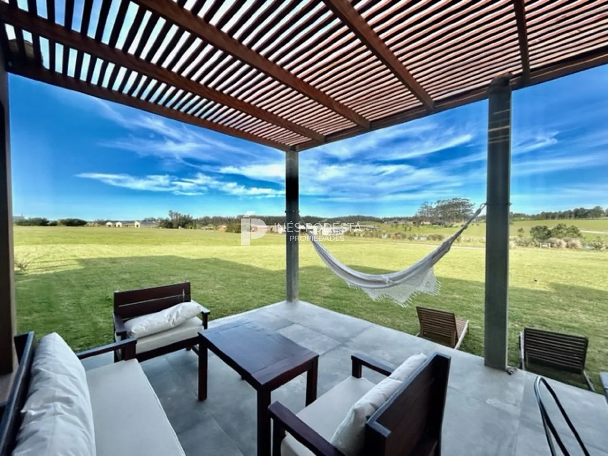 Dentro de el exclusivo barrio privado de Pueblo Mío, ofrecemos esta propiedad impecable de construcción tradicional con doble pared de ladrillo, 160 m2 edificados, amplio living y comedor con estufa a leña, toilette, 2 grandes suites (la principal con vestidor), lavadero, 2 cocheras, calefaccionada por bomba de calor con losa radiante y agua caliente central. Excelente orientación de sol noroeste, ideal para vivir todo el año. Club House con pileta, caballos, gimnasio, canchas, deportes acuáticos en verano, dormis en alquiler para los propietarios