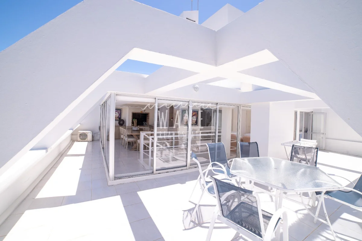 Amplias terrazas que rodean la unidad, ideales para tomar sol, descansar o disfrutar de atardeceres únicos.
