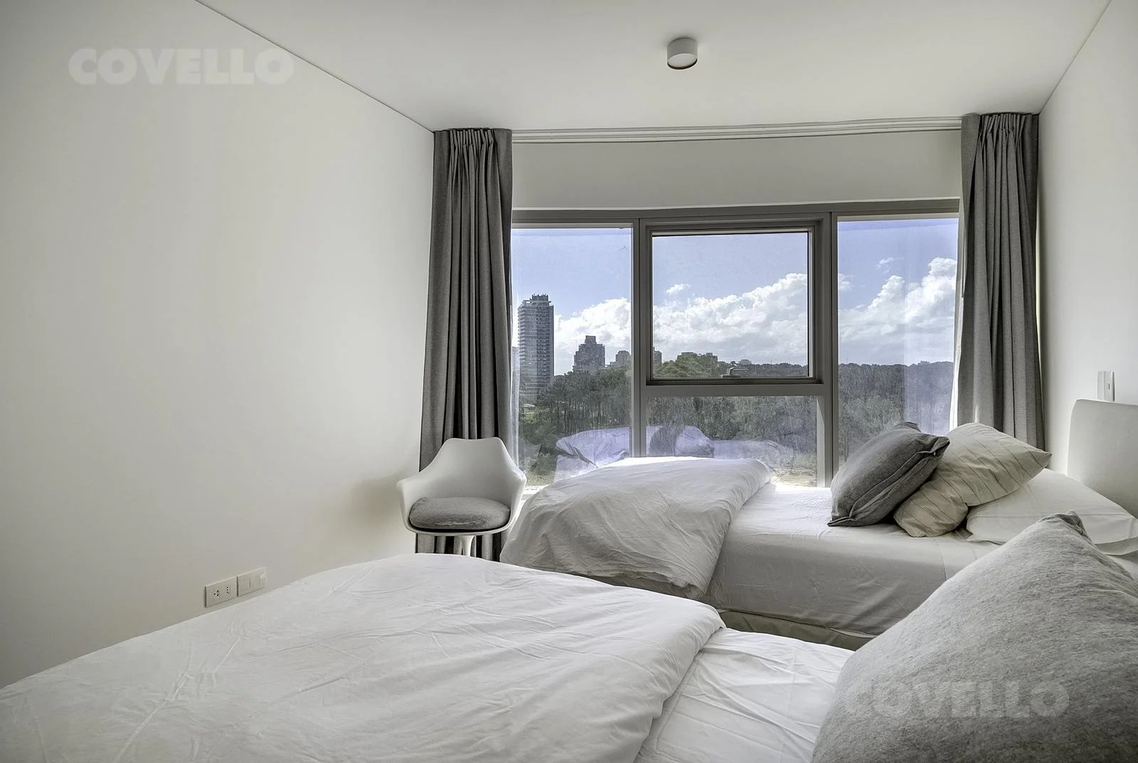 Ofrecemos una espléndida unidad esquinera con un amplio living room y una moderna cocina integrada. Desde el living room se puede disfrutar de una vista directa al océano, mientras que los dormitorios ofrecen vistas panorámicas al bosque. Los dormitorios cuentan con baños en suite para mayor comodidad. Además, la propiedad incluye un práctico lavadero.