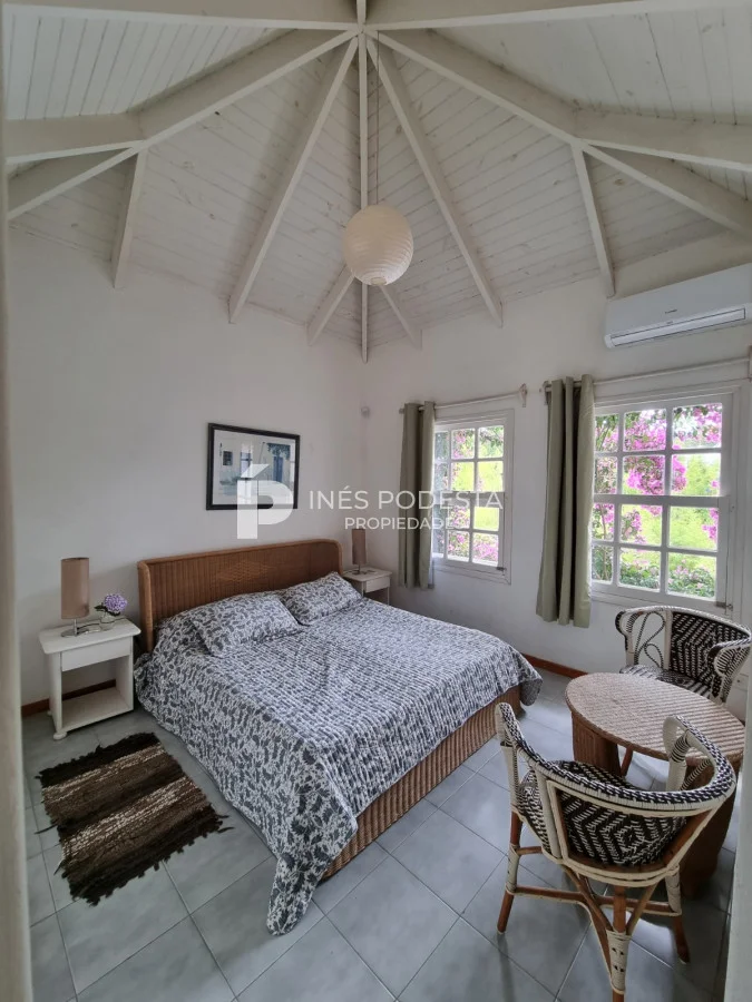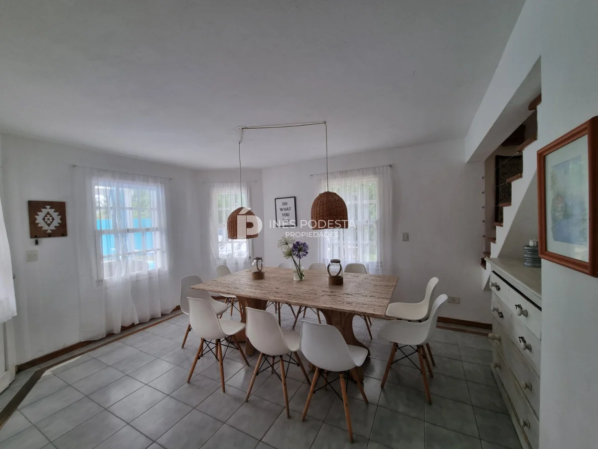 Casa en dos plantas con capacidad para 12 personas ubicada a 3 cuadras de la posta del Cangrejo, 5 dormitorios y todos con aire acondicionado. En planta alta master suite y 3 dormitorios que comparten un baño. En planta baja 1 dormitorio con baño, baño social, living, comedor, cocina completa, parrillero techado con policarbonato y piscina climatizada.
