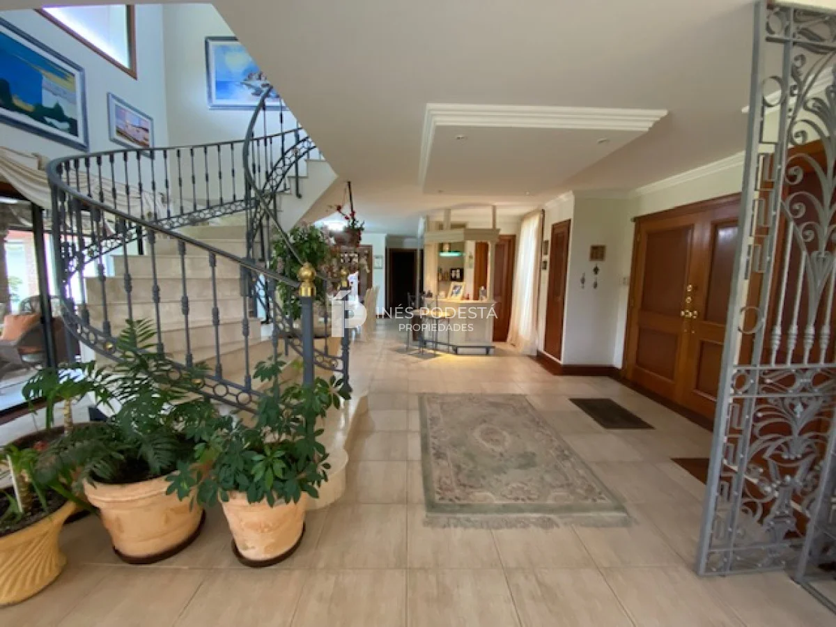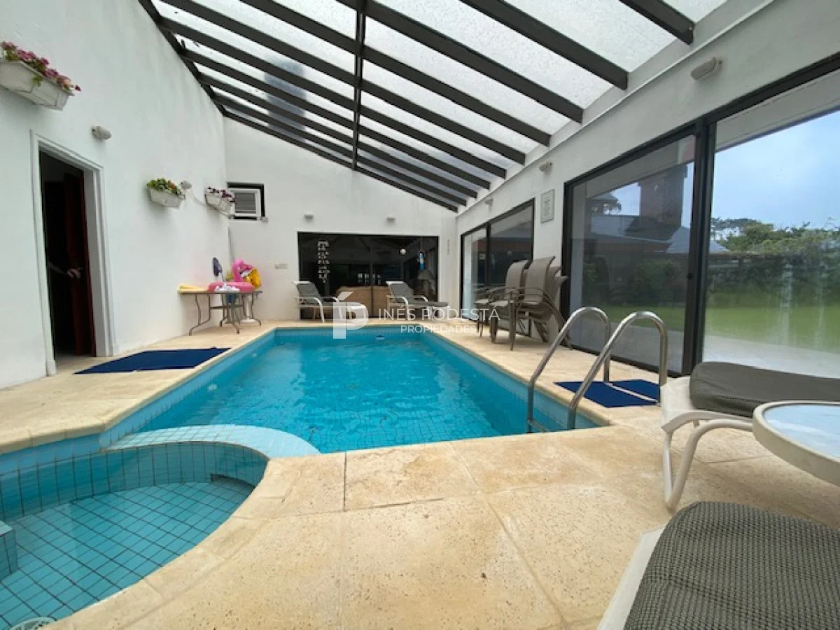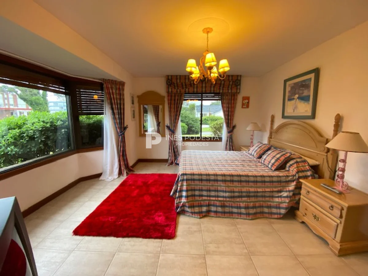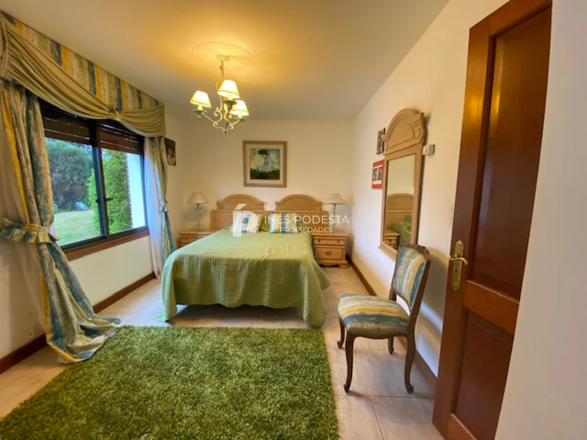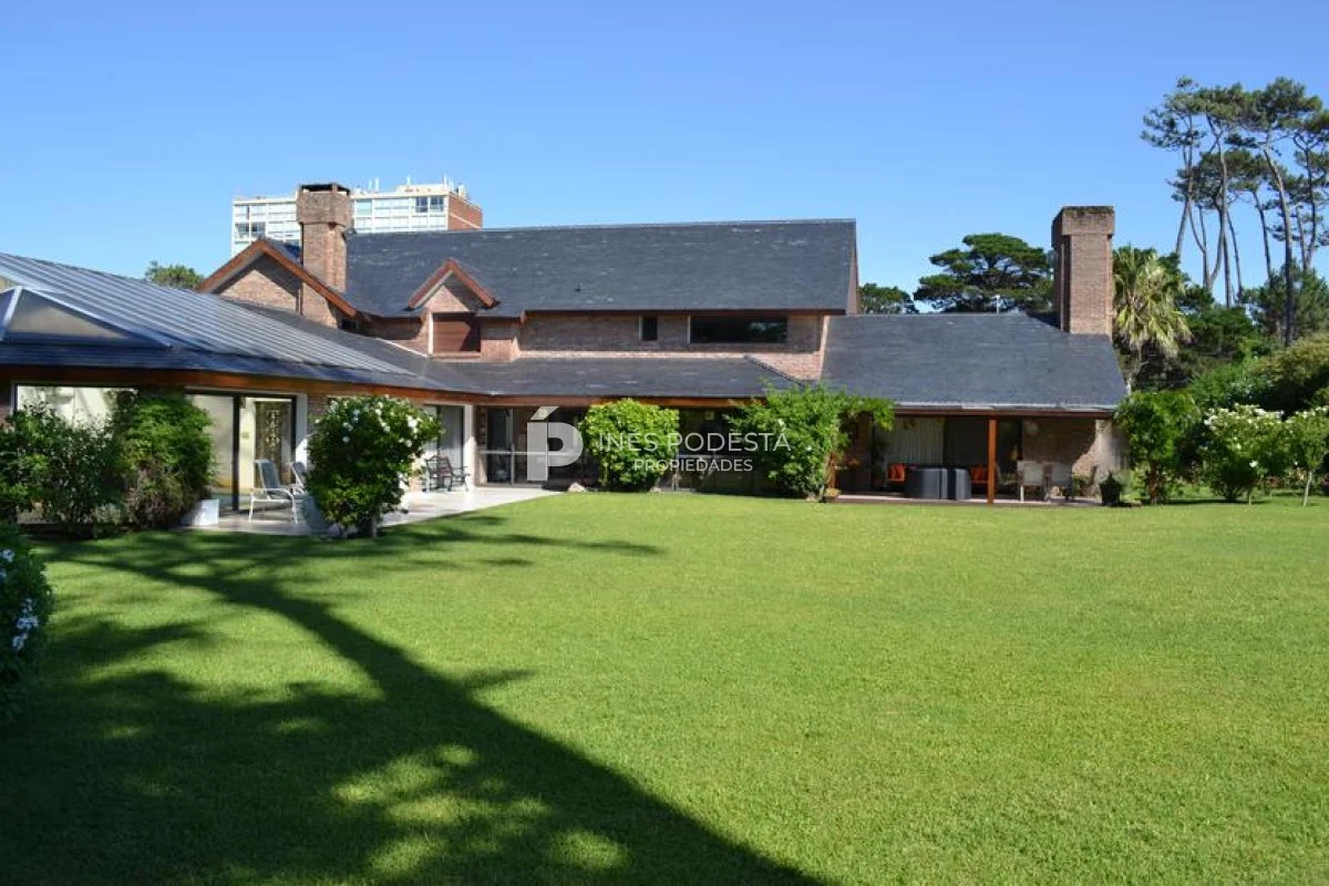 En playa mansa a 1 cuadra del mar, 2150 m2 de parque y 630m2 edificados. Espléndida casa de excelente construcción, y muy bien mantenida, toilette, 7 dormitorios, 6 baños (5 en suite), dependencia servicio, calefacción central, sectorizada a gas piscina interior climatizada, baño de piscina, sauna, pisos de mármol, todo de muy buena calidad, gge para dos autos! Carpintería en cedro y Lapacho! Única!! Consulte financiación y toma de propiedad menor valor