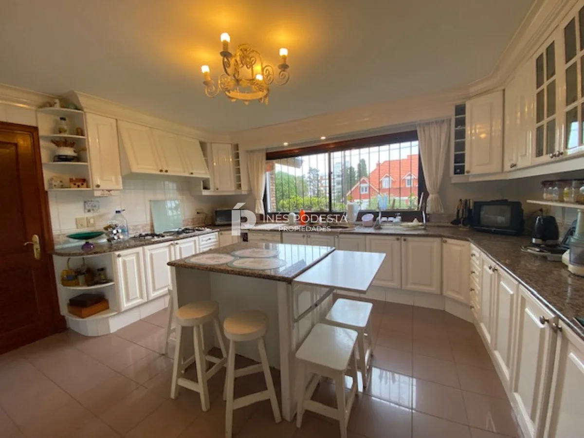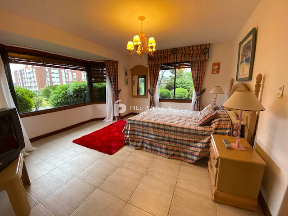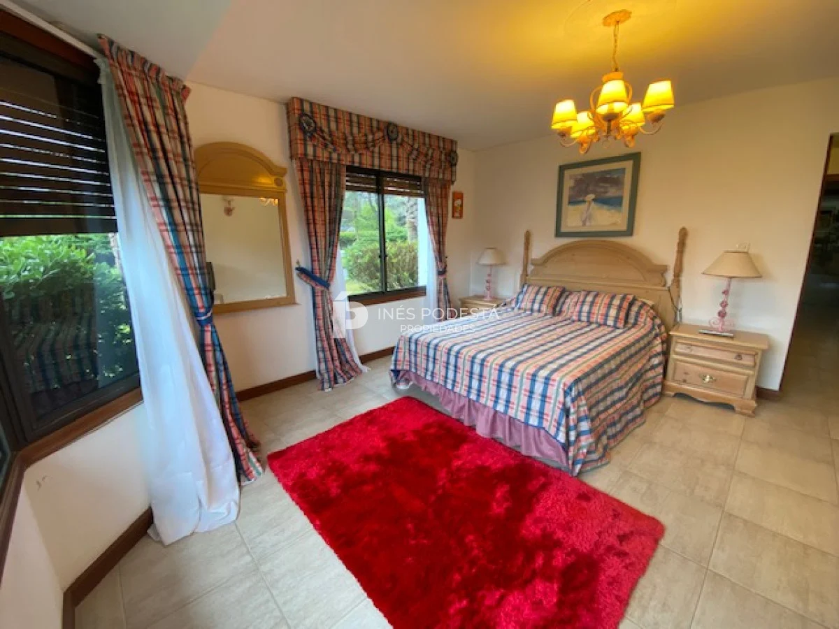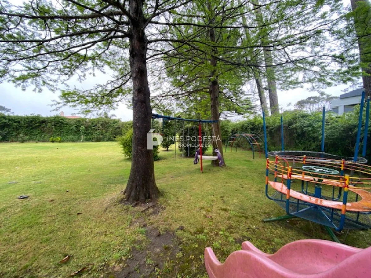 En playa mansa a 1 cuadra del mar, 2150 m2 de parque y 630m2 edificados. Espléndida casa de excelente construcción, y muy bien mantenida, toilette, 7 dormitorios, 6 baños (5 en suite), dependencia servicio, calefacción central, sectorizada a gas piscina interior climatizada, baño de piscina, sauna, pisos de mármol, todo de muy buena calidad, gge para dos autos! Carpintería en cedro y Lapacho! Única!! Consulte financiación y toma de propiedad menor valor