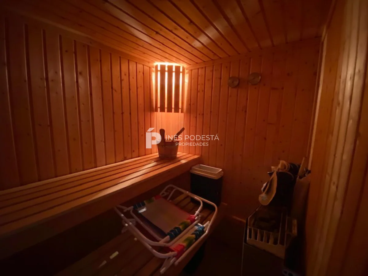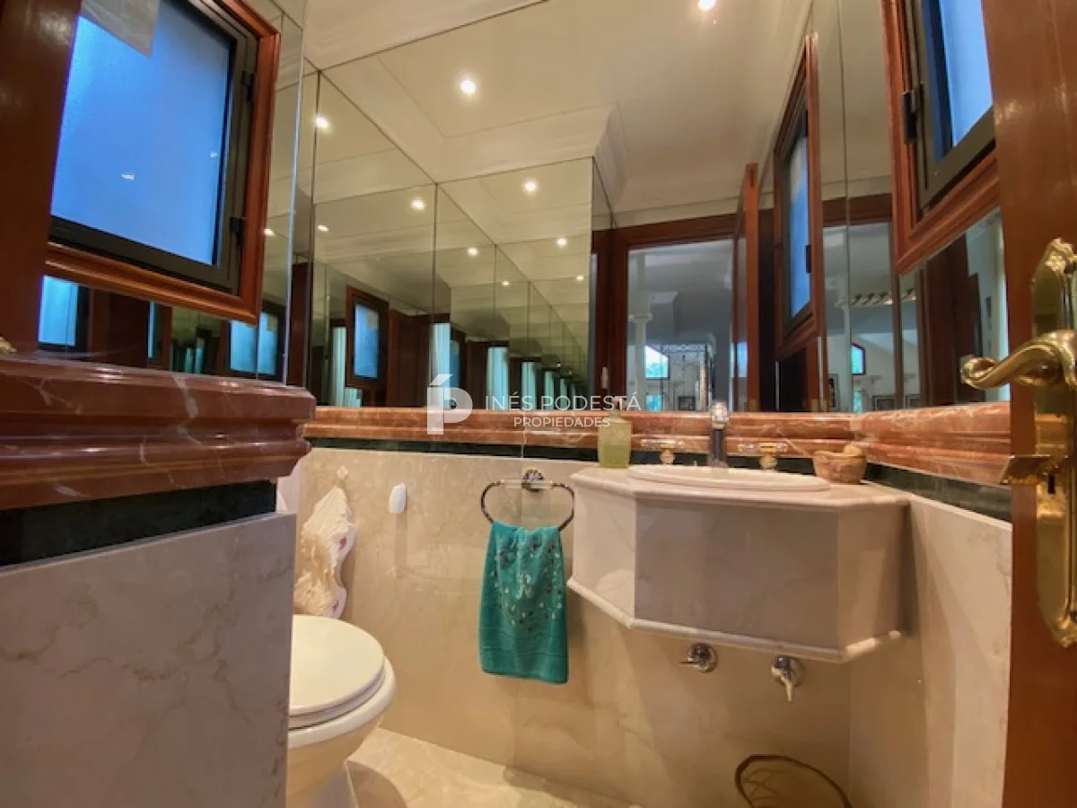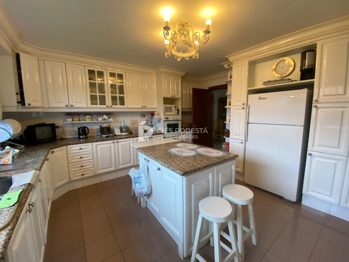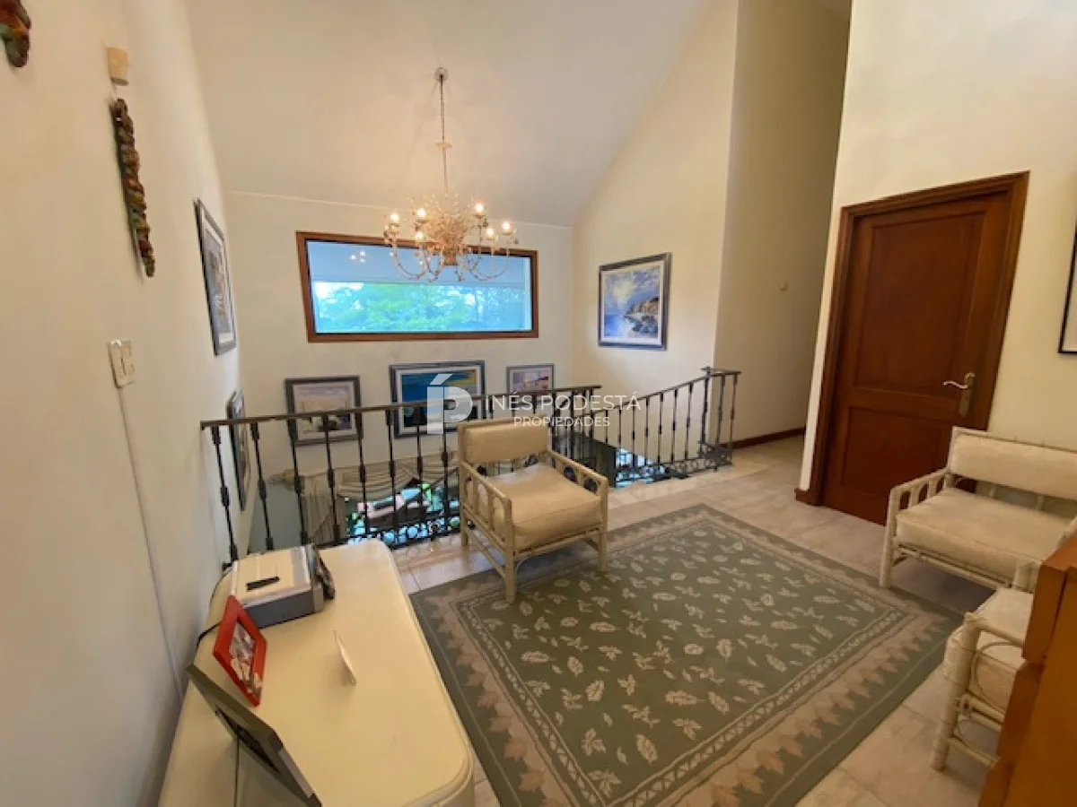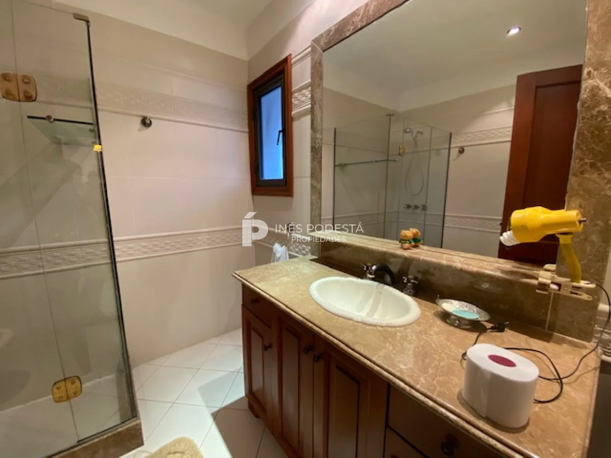 En playa mansa a 1 cuadra del mar, 2150 m2 de parque y 630m2 edificados. Espléndida casa de excelente construcción, y muy bien mantenida, toilette, 7 dormitorios, 6 baños (5 en suite), dependencia servicio, calefacción central, sectorizada a gas piscina interior climatizada, baño de piscina, sauna, pisos de mármol, todo de muy buena calidad, gge para dos autos! Carpintería en cedro y Lapacho! Única!! Consulte financiación y toma de propiedad menor valor