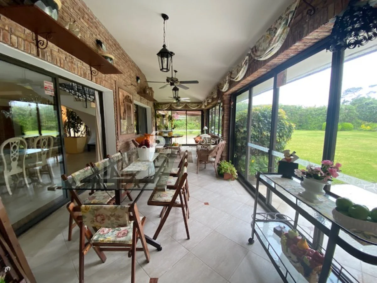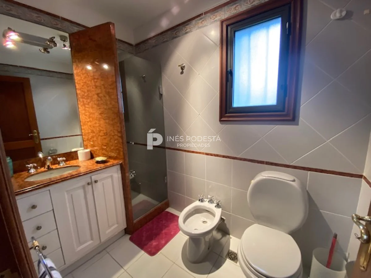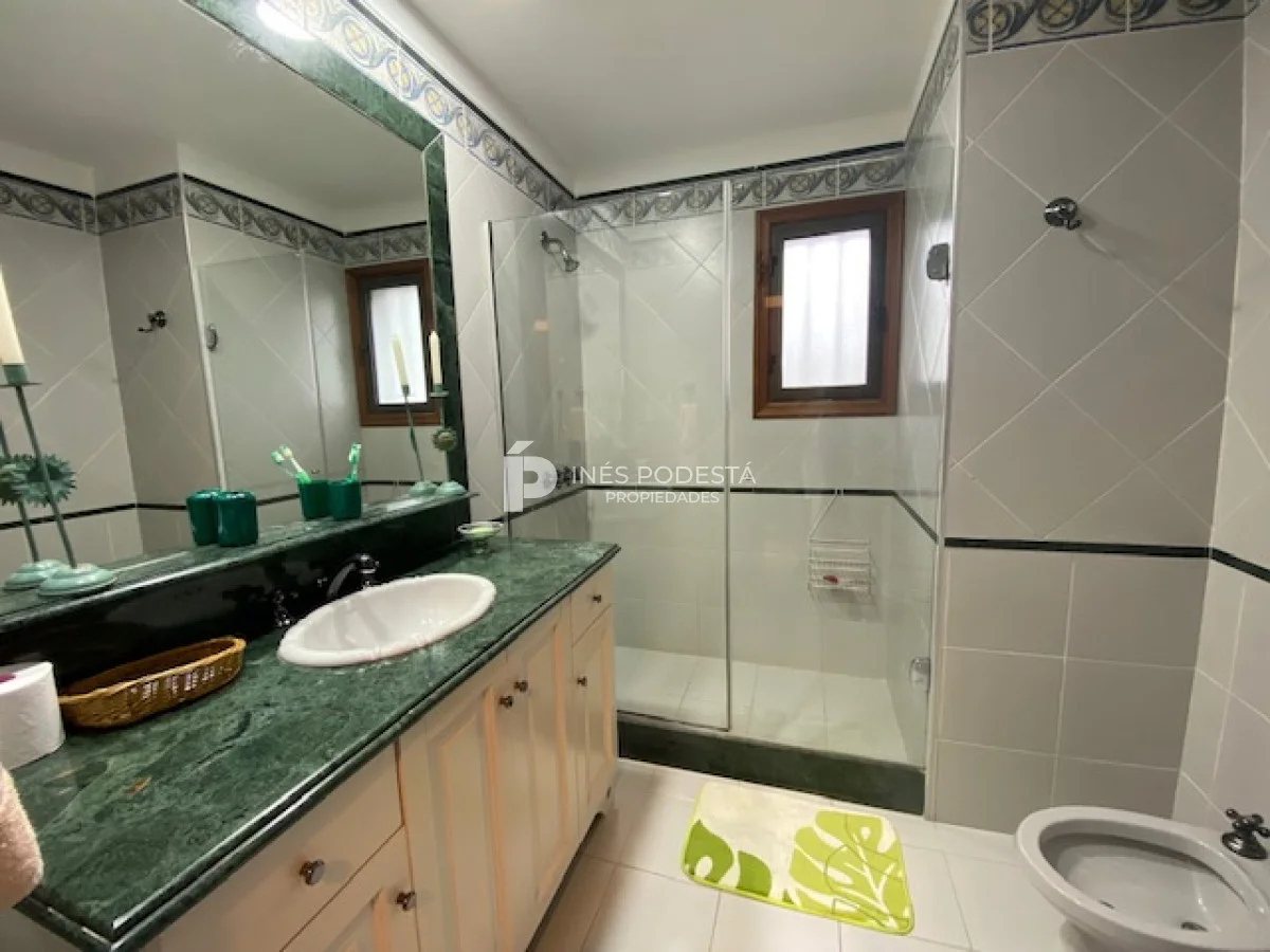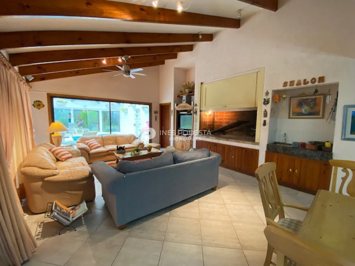En playa mansa a 1 cuadra del mar, 2150 m2 de parque y 630m2 edificados. Espléndida casa de excelente construcción, y muy bien mantenida, toilette, 7 dormitorios, 6 baños (5 en suite), dependencia servicio, calefacción central, sectorizada a gas piscina interior climatizada, baño de piscina, sauna, pisos de mármol, todo de muy buena calidad, gge para dos autos! Carpintería en cedro y Lapacho! Única!! Consulte financiación y toma de propiedad menor valor
