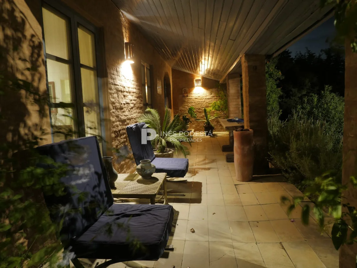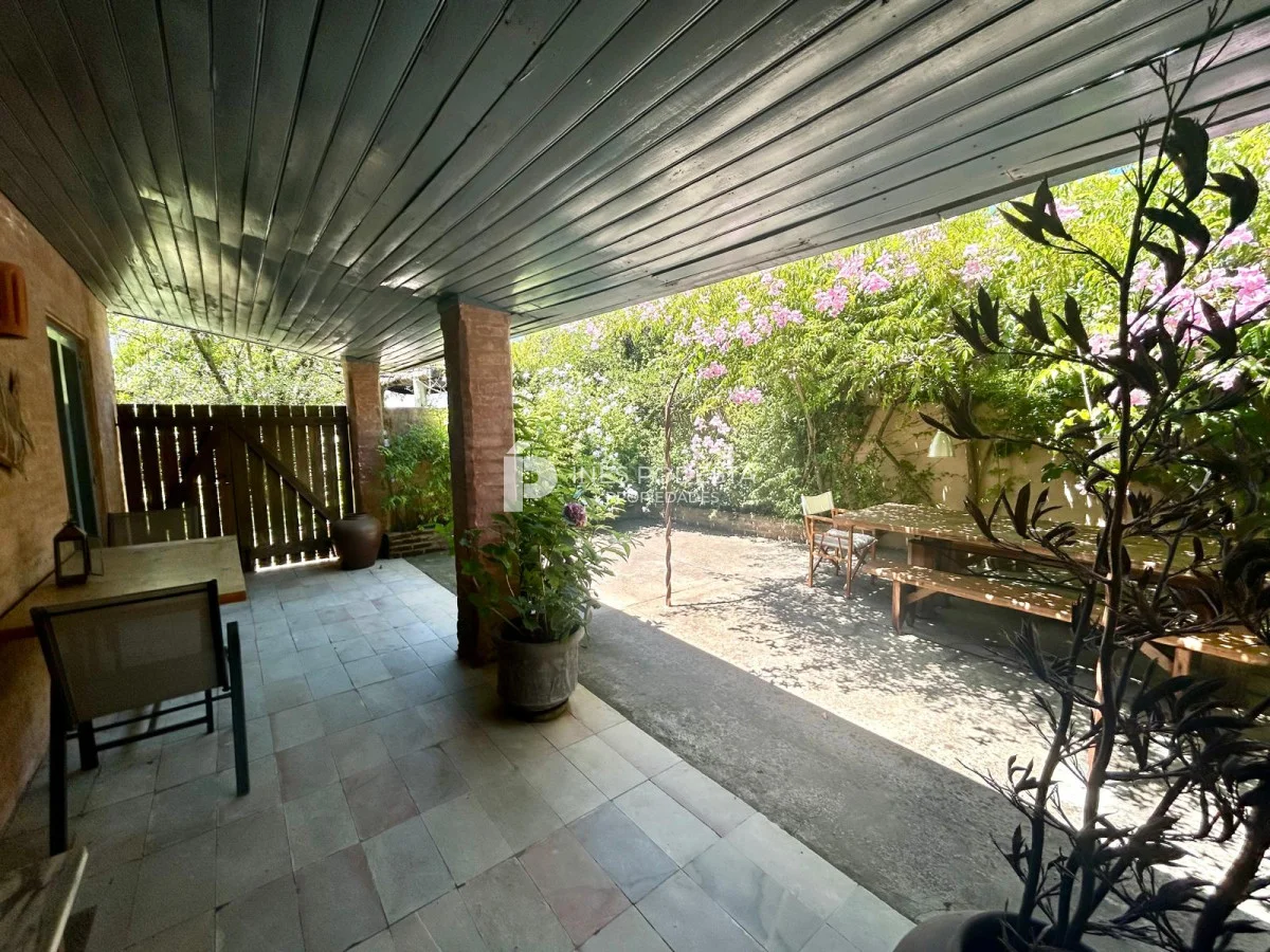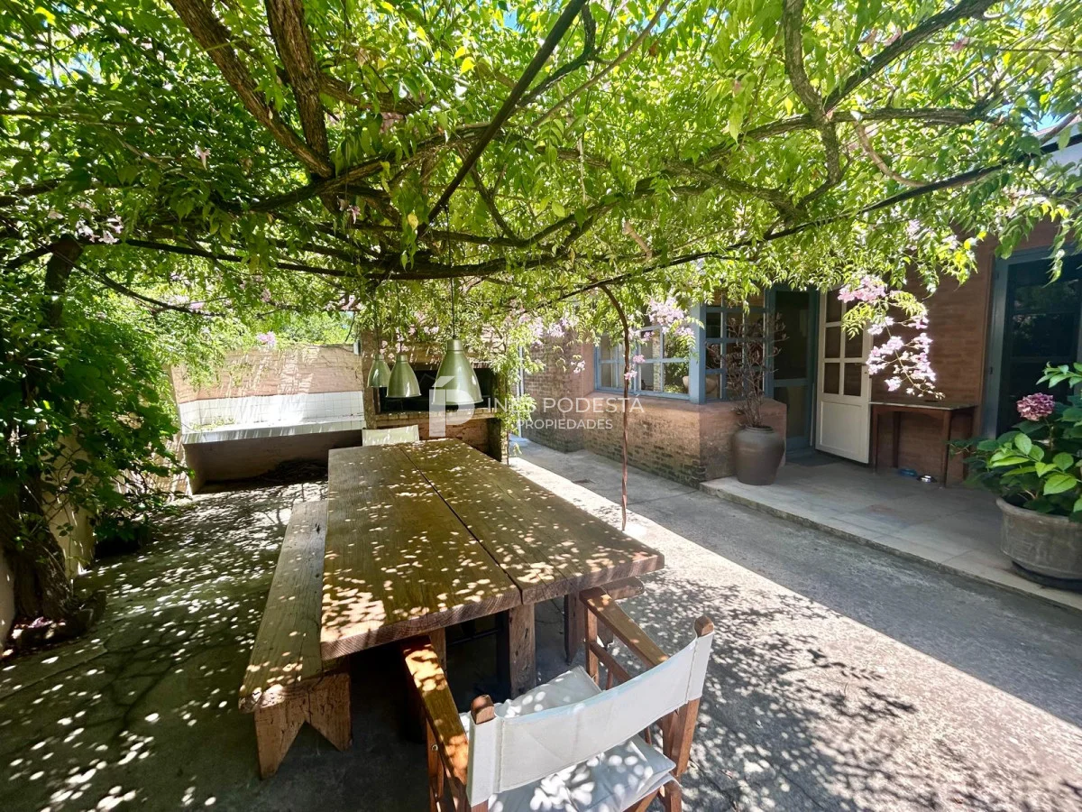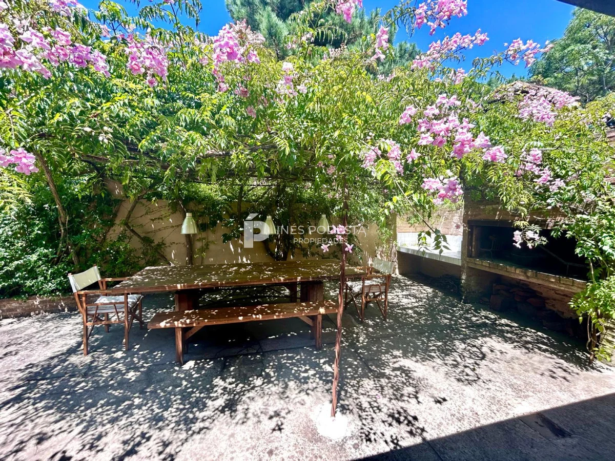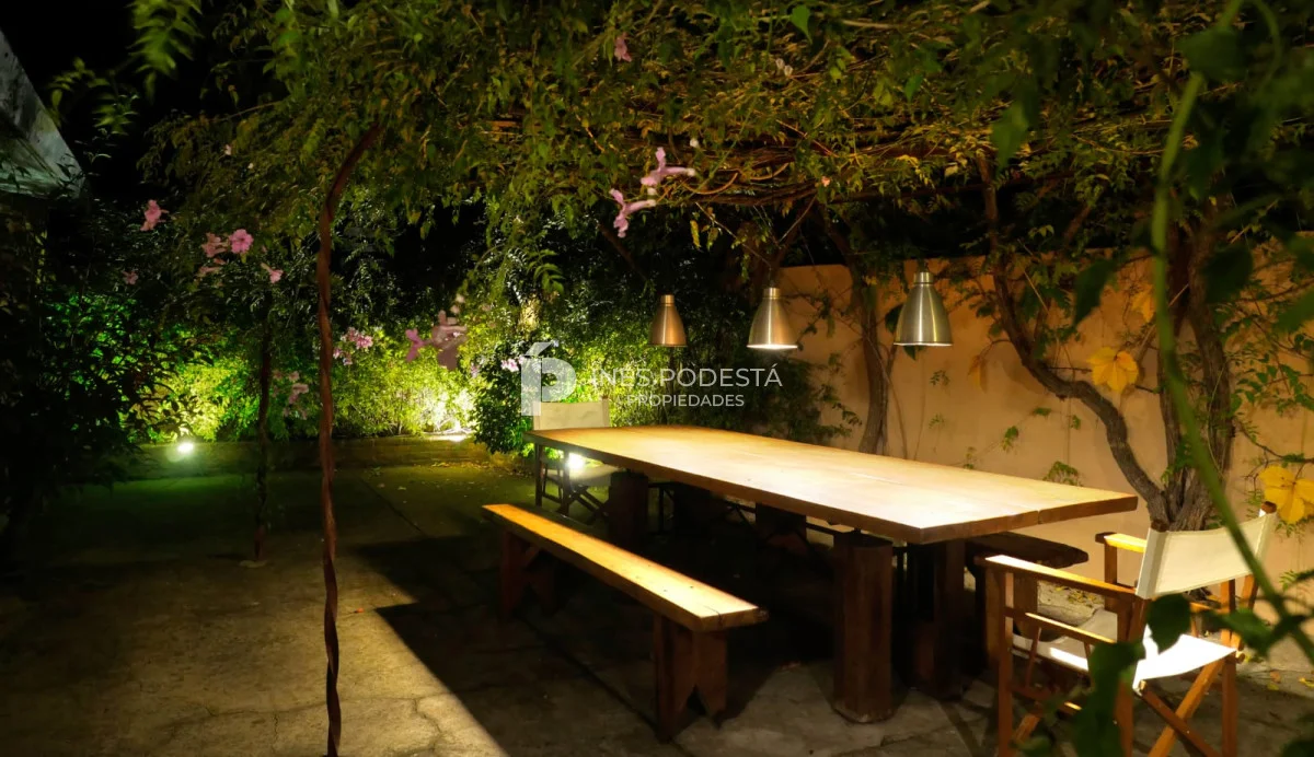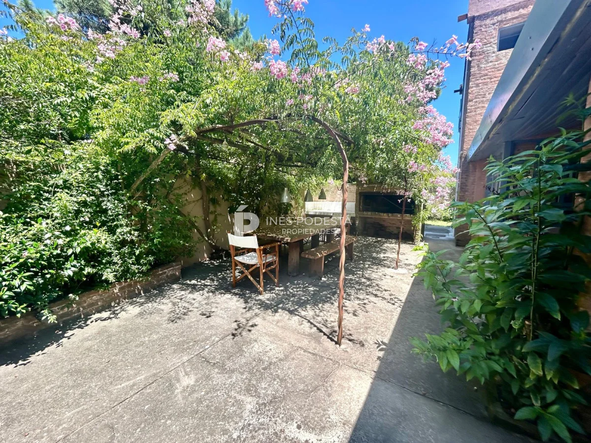 Muy lindo patio interior con parrillero, plantas y enredaderas.