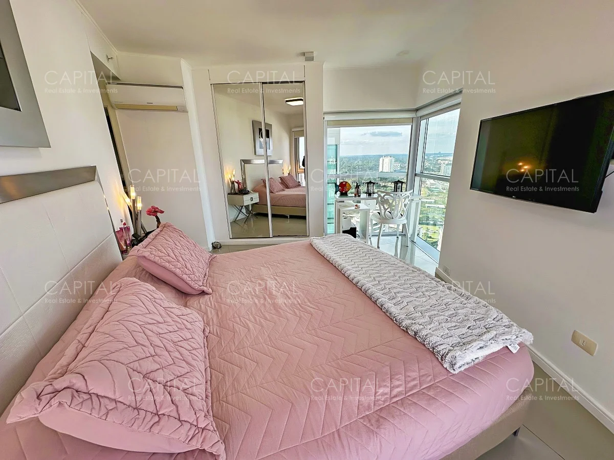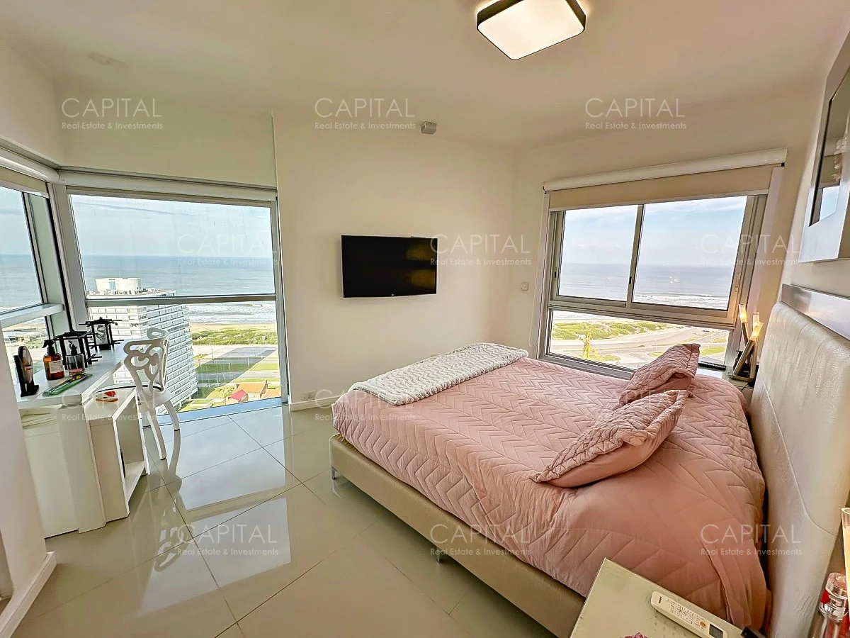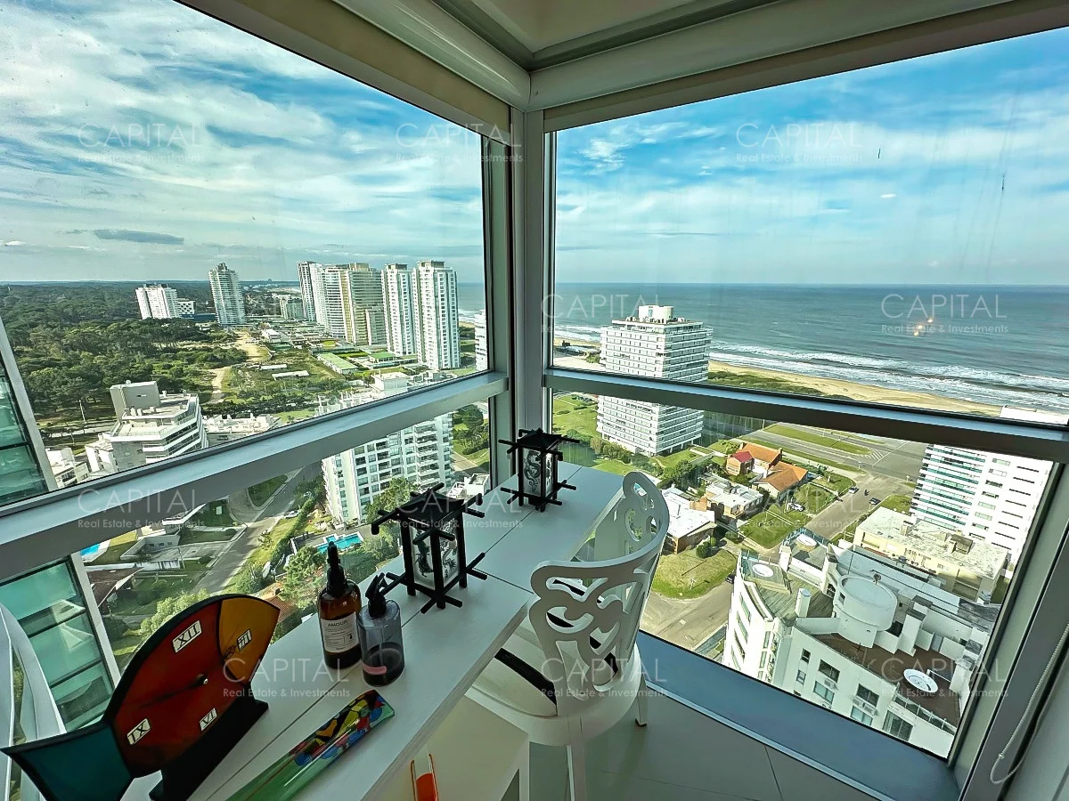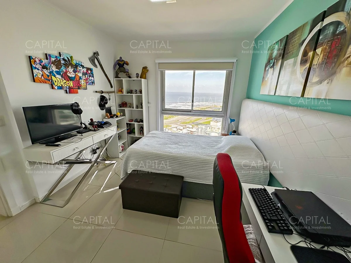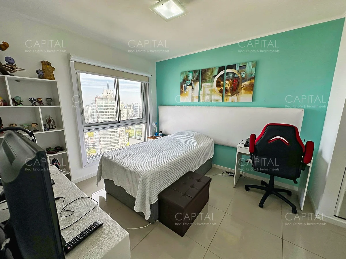 Hermoso apartamento en piso alto con 3 dormitorios, 4 baños, 1 de ellos en suite, cocina definida, living comedor y balcón.