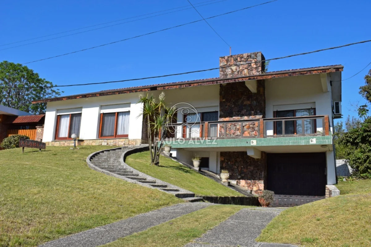 Ubicada en una de las zonas más cotizadas Piriápolis, Barrio Country. Sobre terreno de 457 m² con 198 metros edificados, propiedad de construcción tradicional, techo de losa, aberturas en madera de excelente calidad. Parque enjardinado al frente con terraza y garage. Casa principal, interiores distribuidos en luminoso living comedor con estufa a leña revestida en piedra, cocina definida totalmente equipada con muebles bajo y sobre mesada. Pasillo distribuidor a tres dormitorios y dos baños completos. Apartamento distribuido en cocina comedor, dormitorio y un baño completo. Patio con barbacoa cubierta. Consulte por más información.