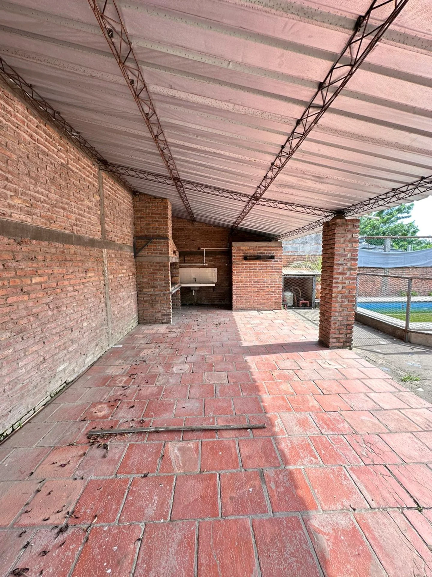 Área semi cubierta con churrasquera, perfecta para reuniones y encuentros al aire libre.