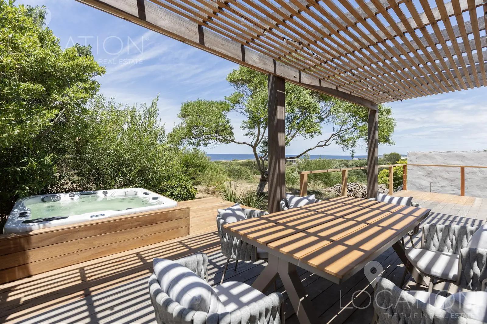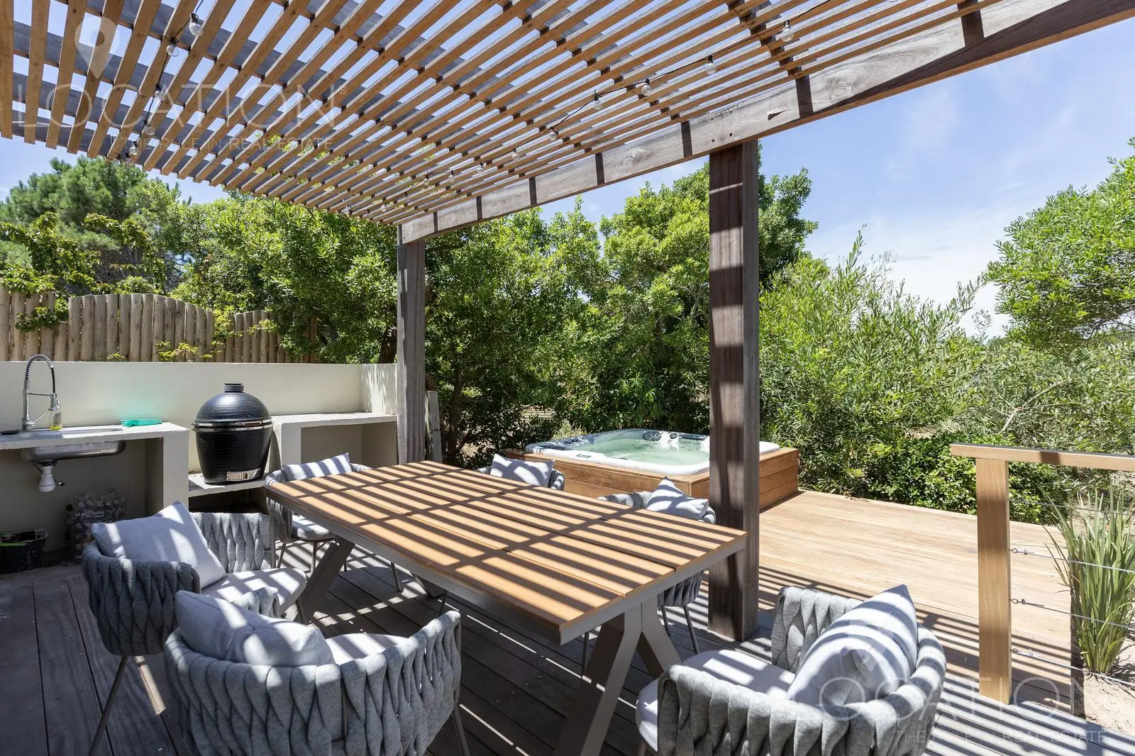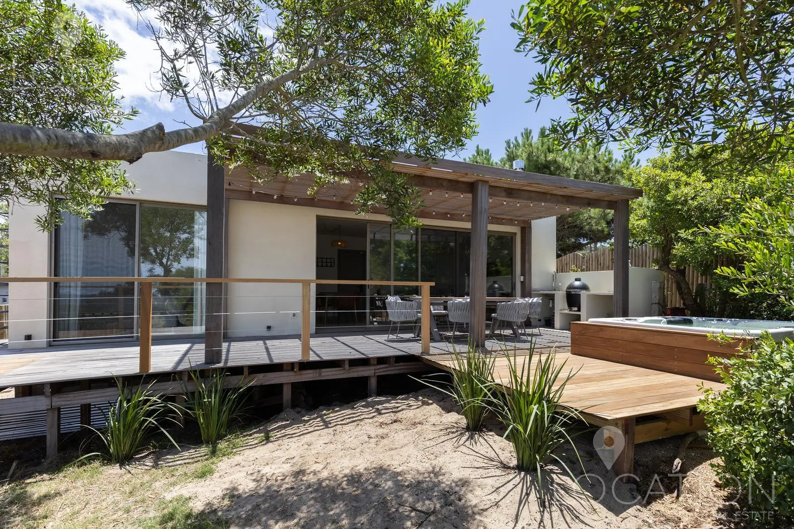 2 amb amplio con sofa que agrega cama de 1 plaza abajo en livingCocina comedorDeck espectacular con jacuzzi y parrilla kamado, acceso a los terrenos de atras y sunset