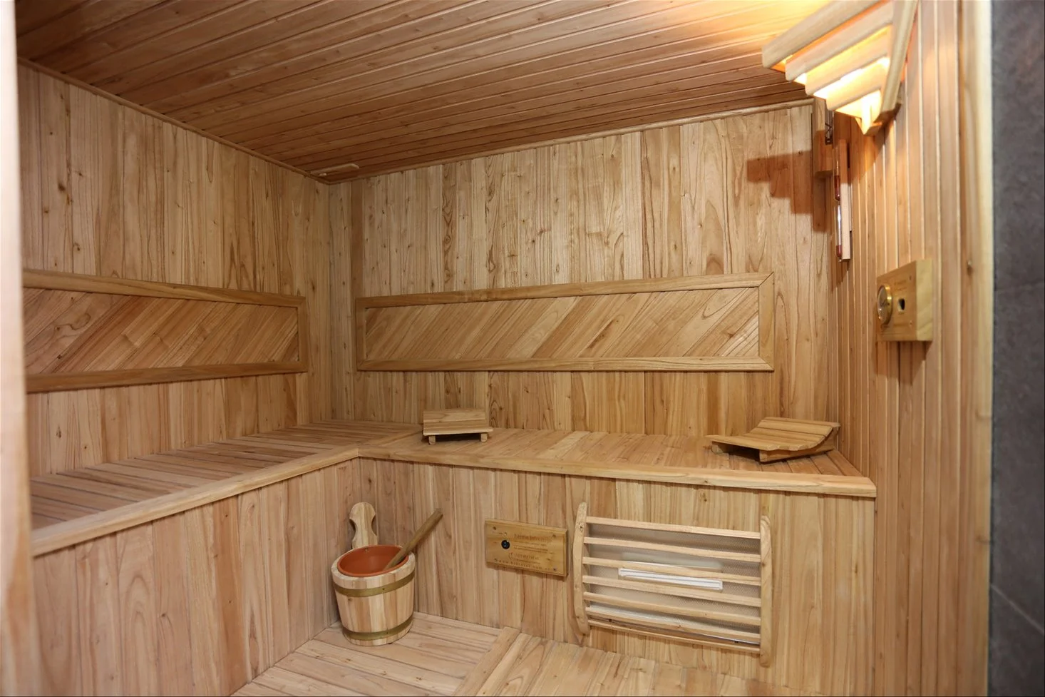 Spa de 70 m² con losa radiante, sauna seco, sauna húmedo, hidromasaje, duchas escocesas y sala de masajes